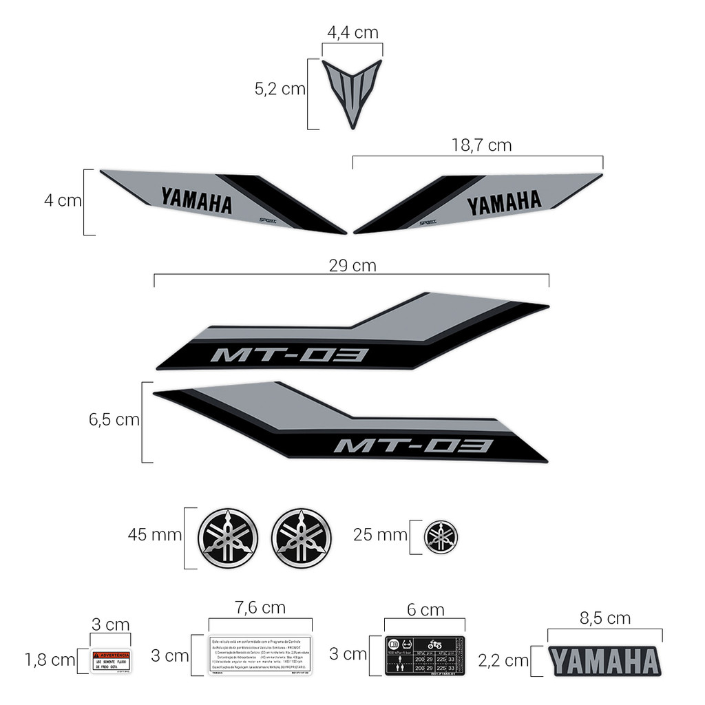 Adesivos MT-03 2023/2024 Moto Preta + Emblemas Logo Yamaha