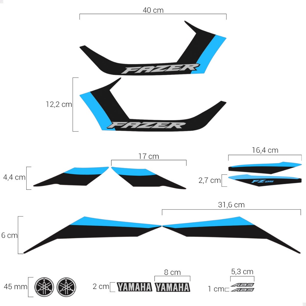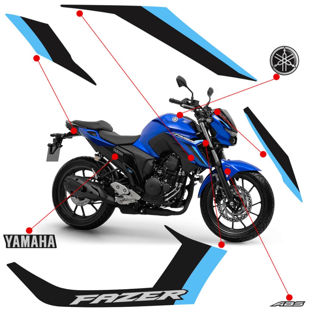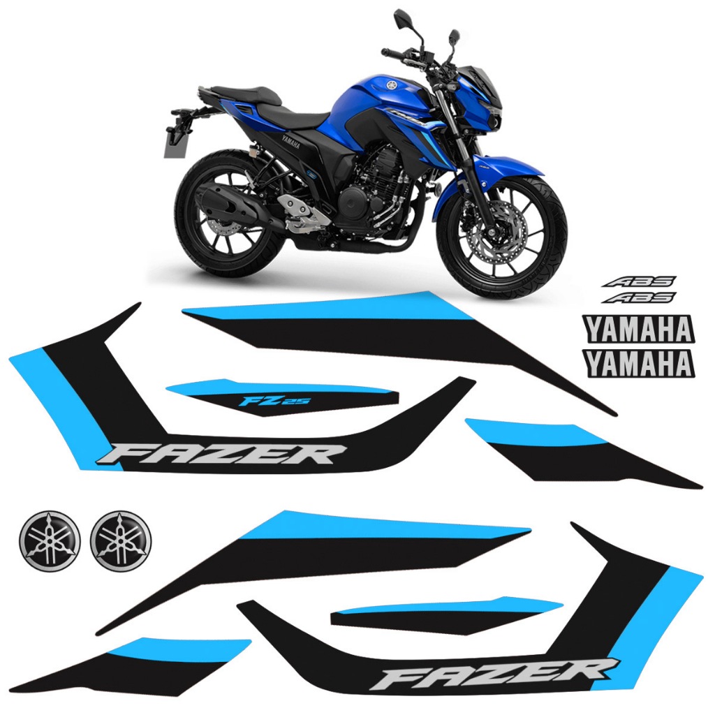 Adesivos Para Yamaha Fazer 250 FZ25 2025 Moto Azul + Logos