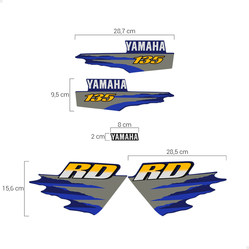 Kit Adesivos Para Yamaha RD 135 1998 Moto Azul Laterais
