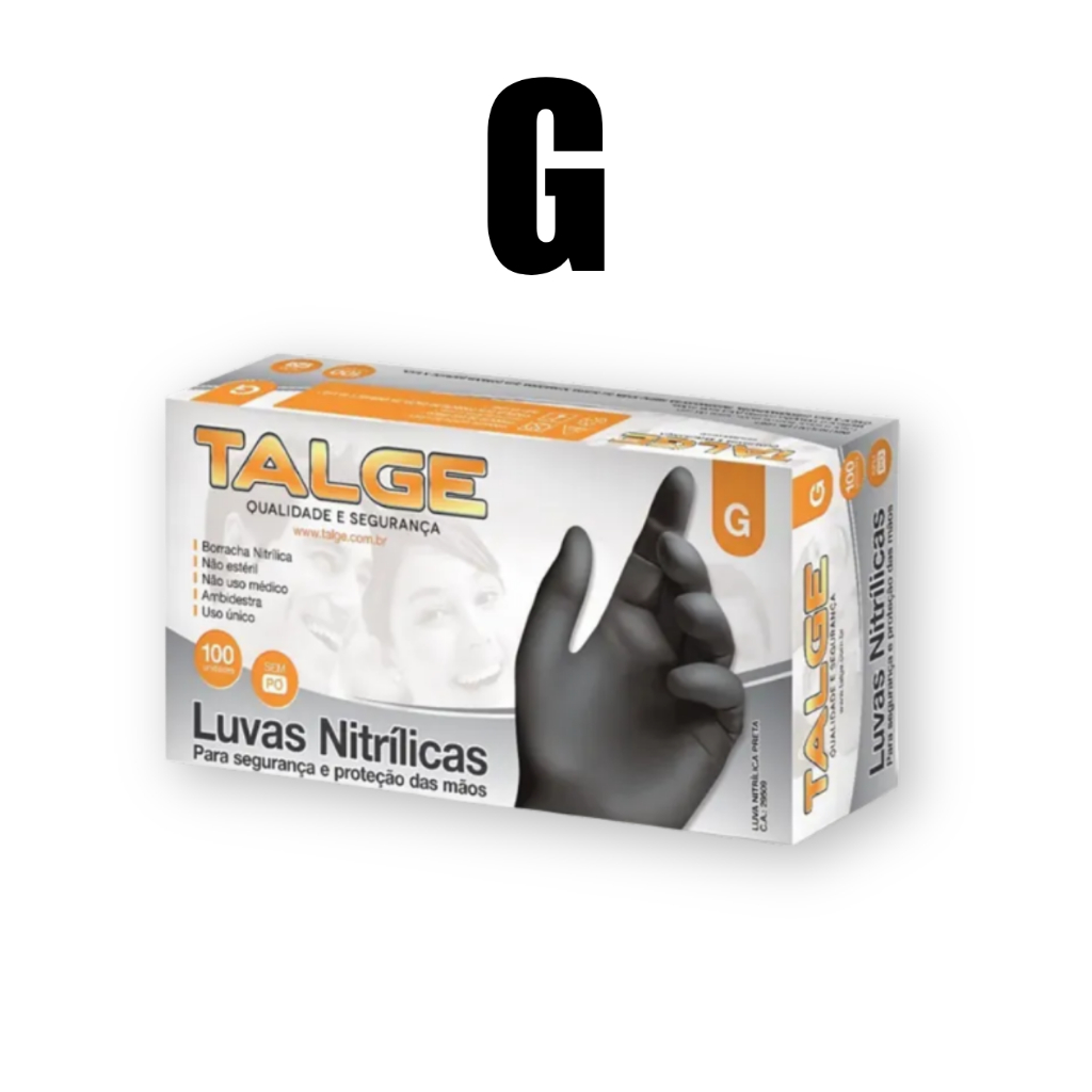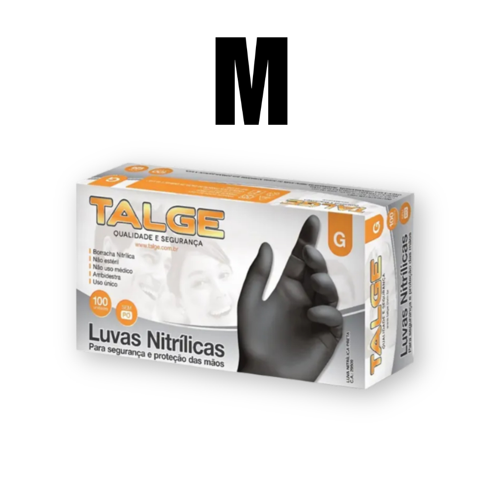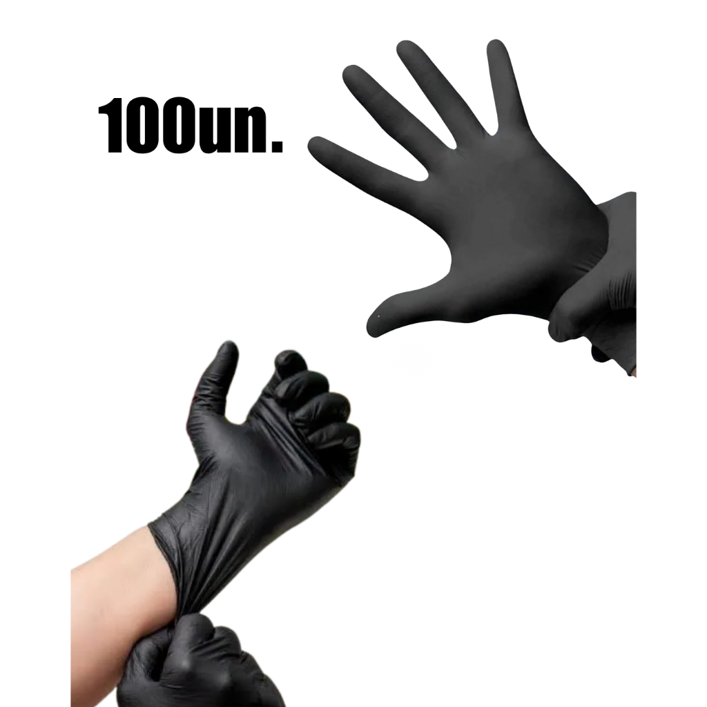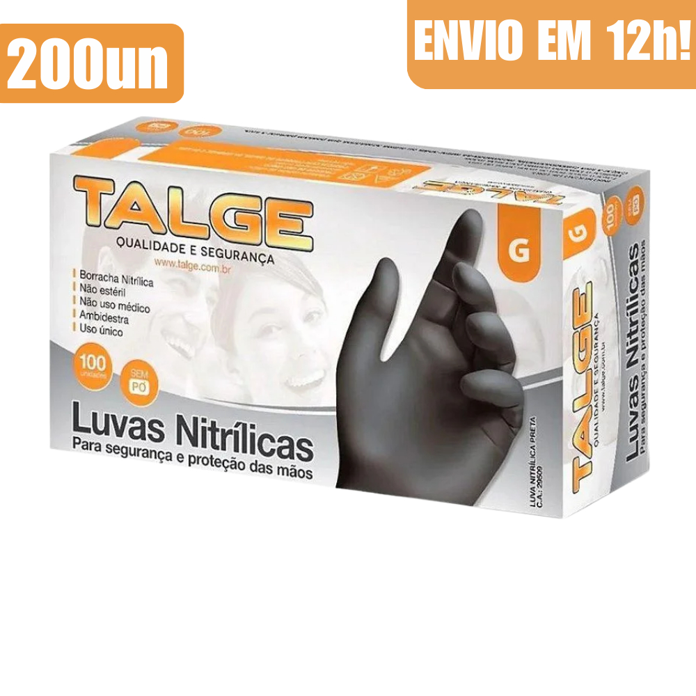 Kit 200 Luva Nitrílica Preta Talge Sem Pó Descartável Profissional Caixa Cozinha Barbeiro Estética Tatuador