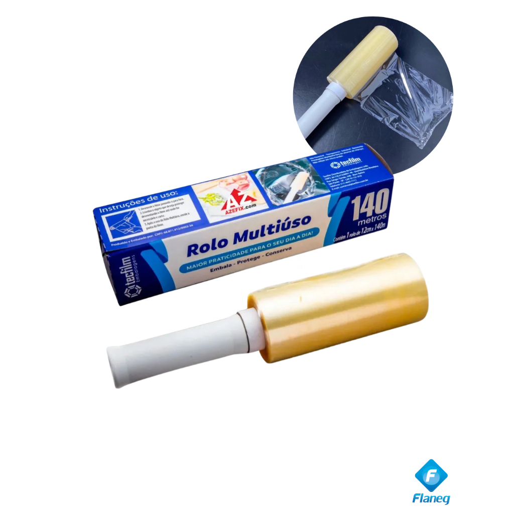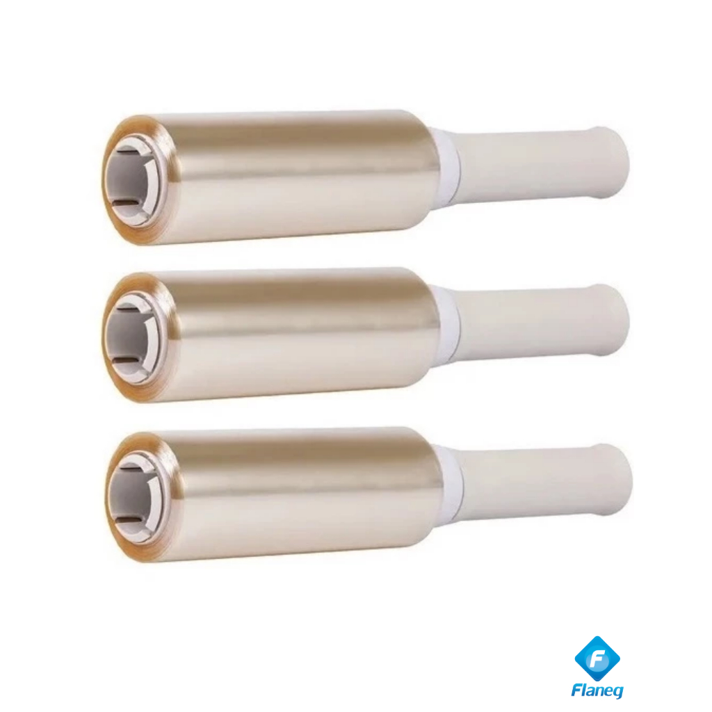 3 Rolos Filme PVC manopla facil 12cm x 140m com Suporte Tecfilm Embalagem Alimentos Cozinha Multiuso Tatuagem Emagrecer