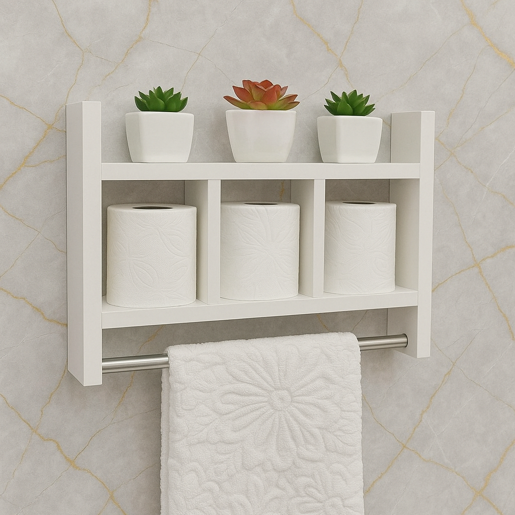 Nicho Porta Toalha e Papel 100% MDF BRANCO TX 15mm Tubo Metal Montado
