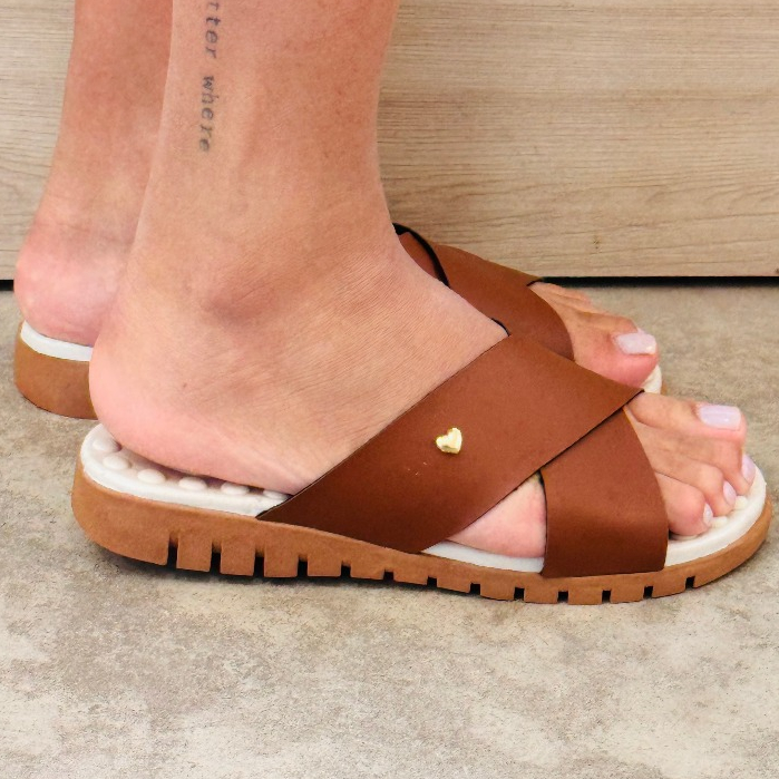 Chinelo Tiras Cruzadas Feminino Ortopédico Sola Massageadora Leve Flexível Saúde Dores Nos Pés