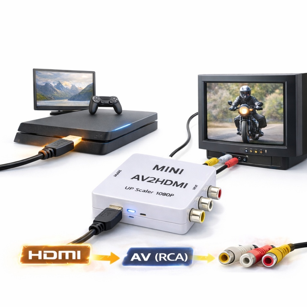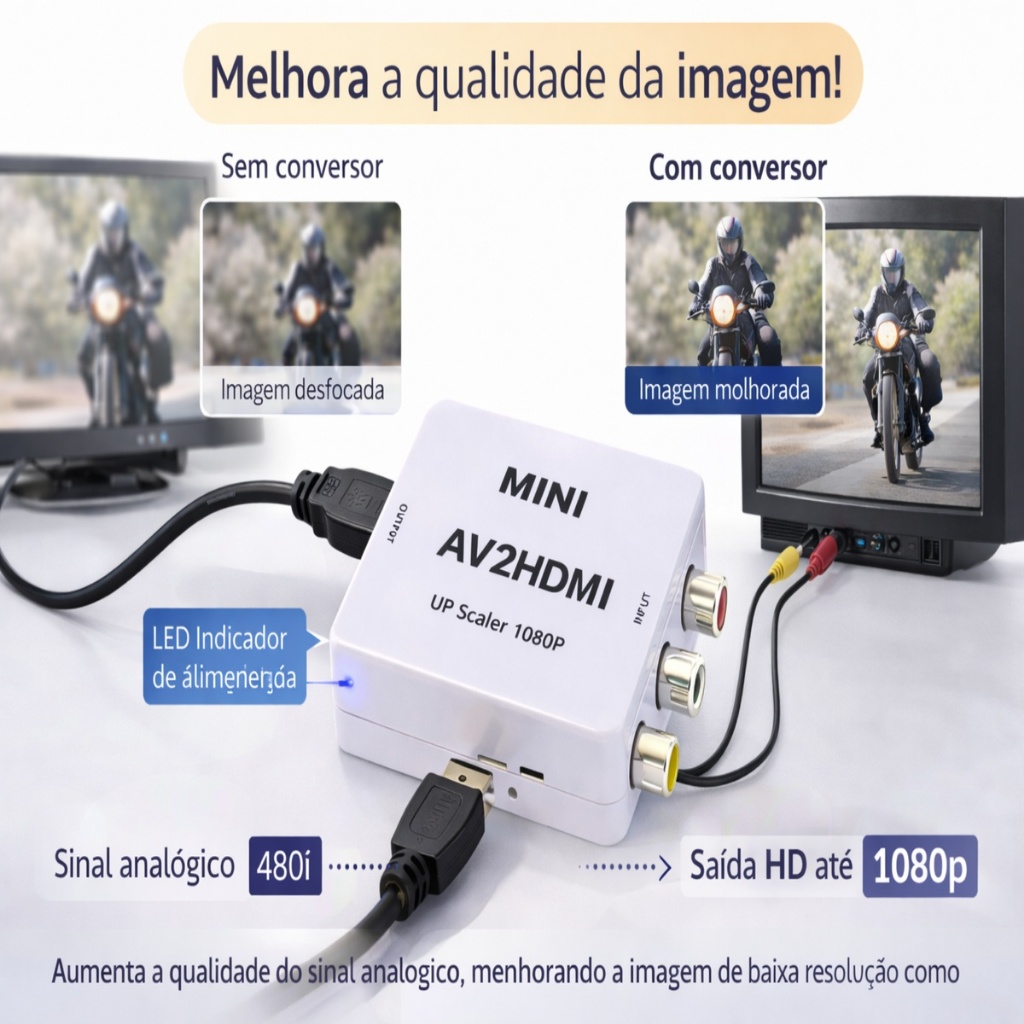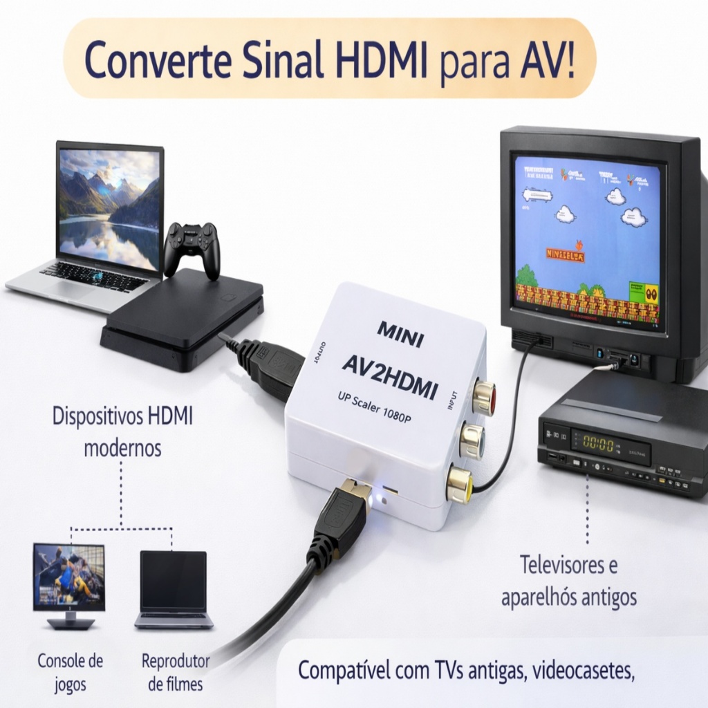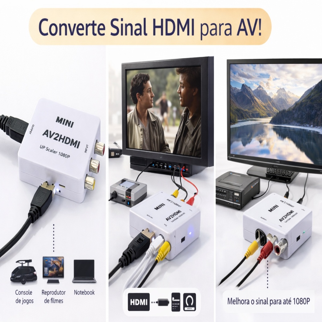 Kit Cabo RCA + Conversor HDMI para AV RCA HDMI2AV Mini Full HD 1080p para TV Antiga DVD Videogame