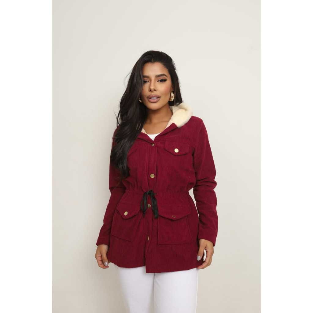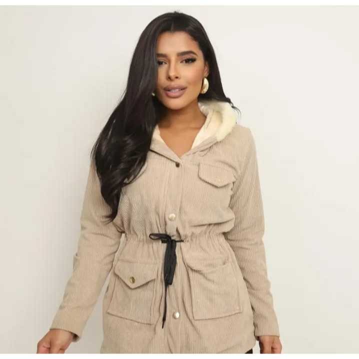 Casaco Sobretudo Estilo Parka Forrado com Capuz