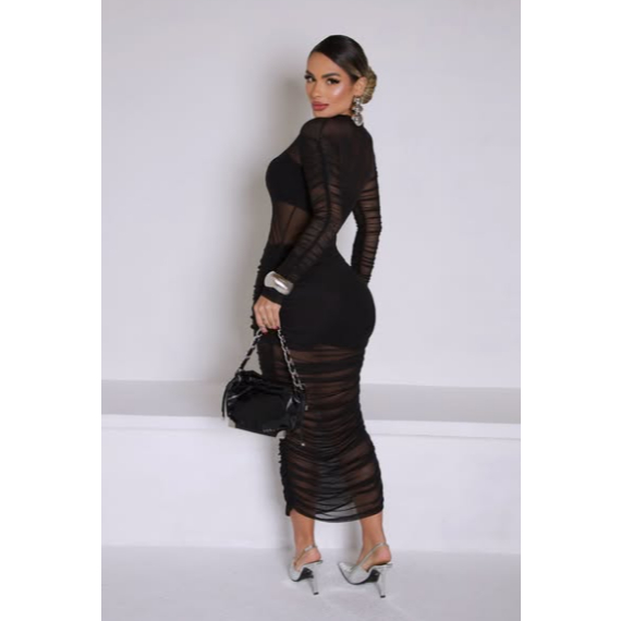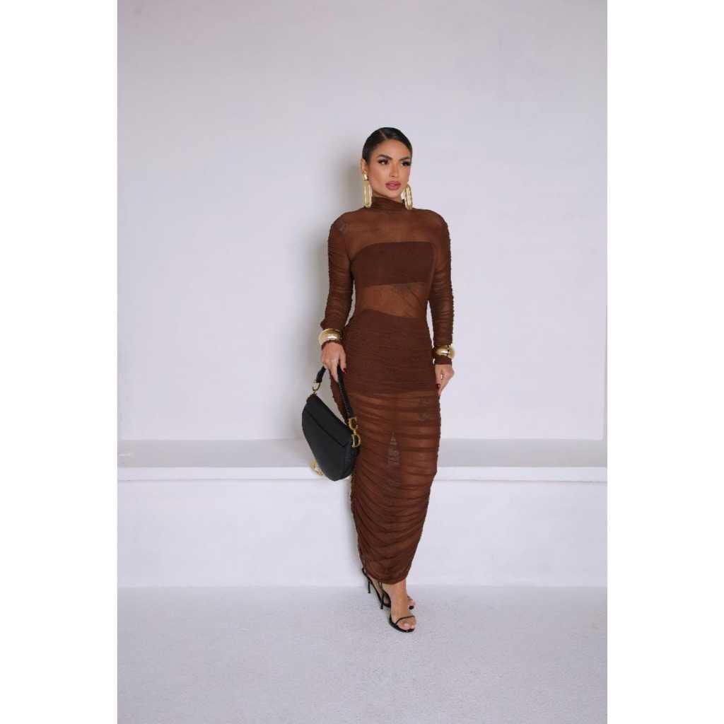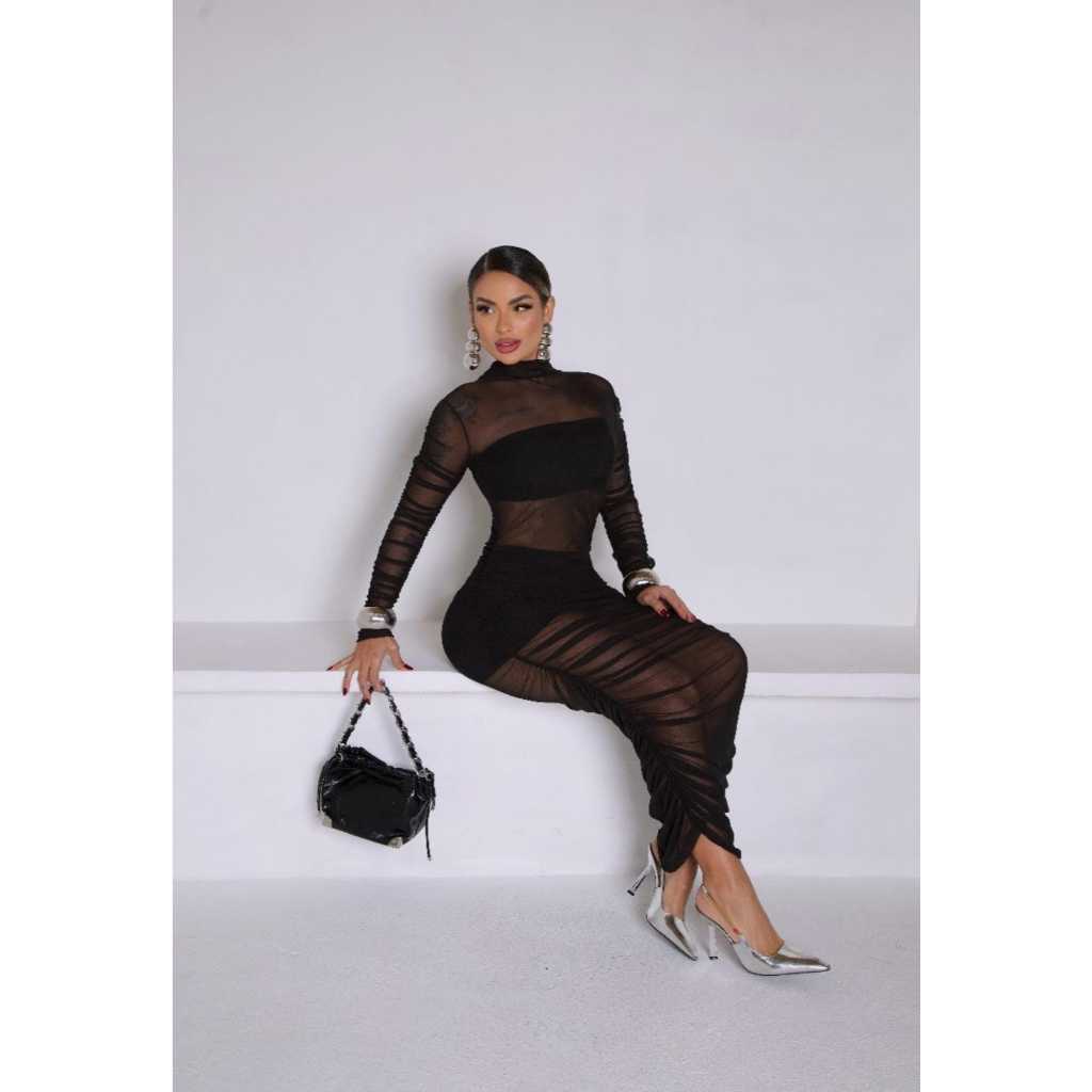 Vestido Em Tule longo Com Short e Cropped