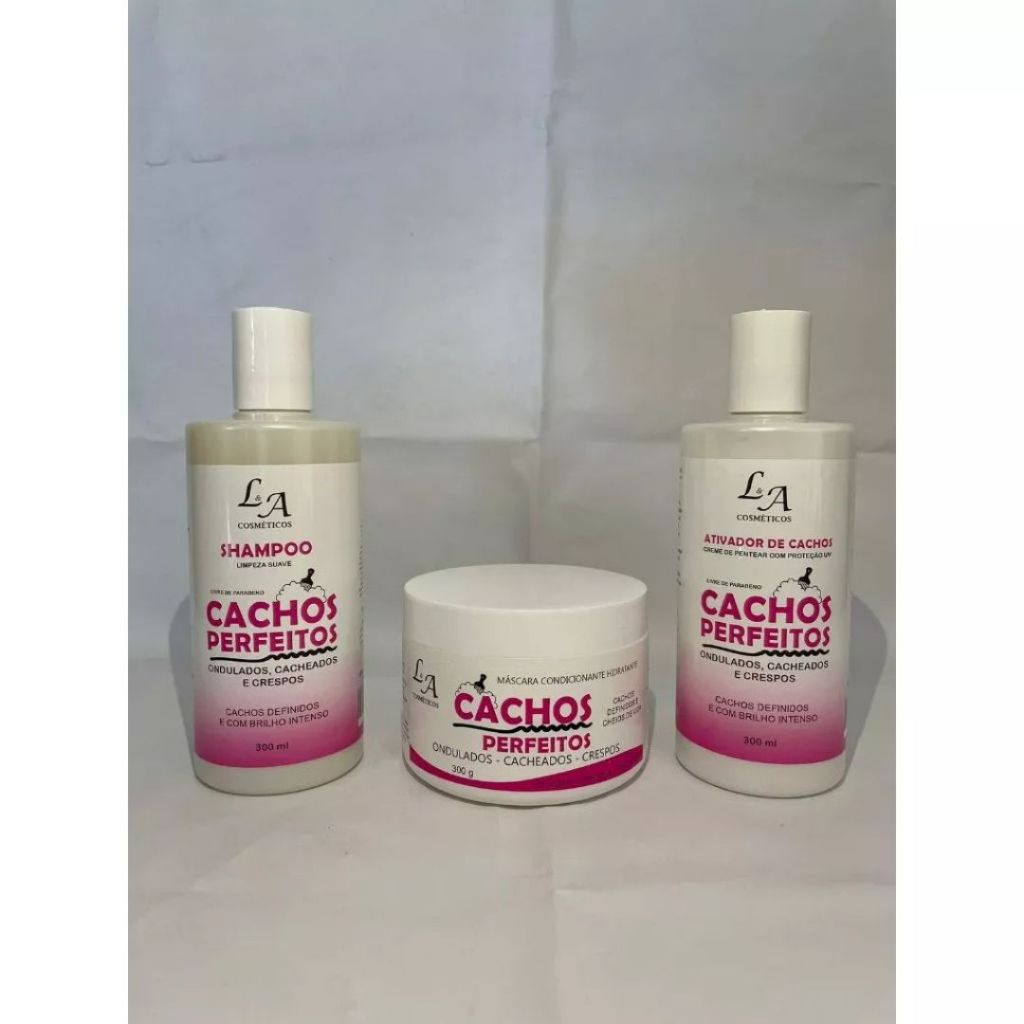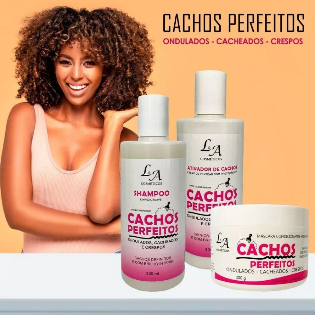 Kit Combo Cachos Perfeitos Shampoo Condicionador e Máscara Hidratante Ativador de cachos 3x300g