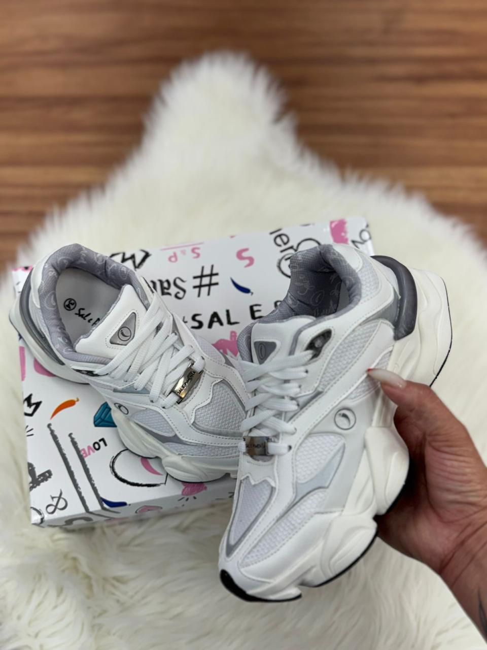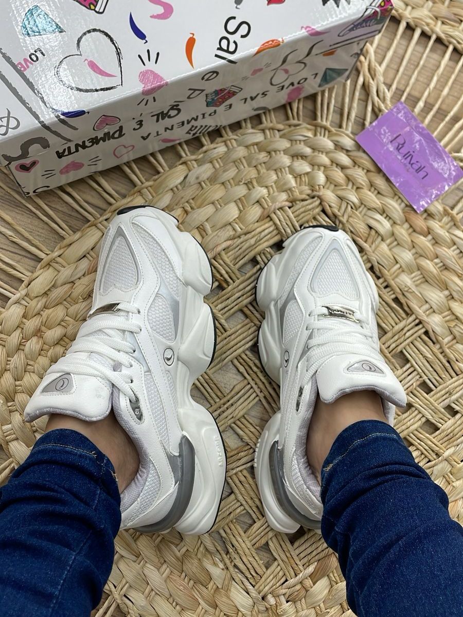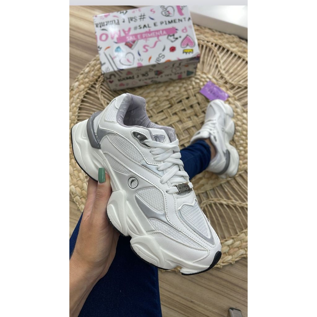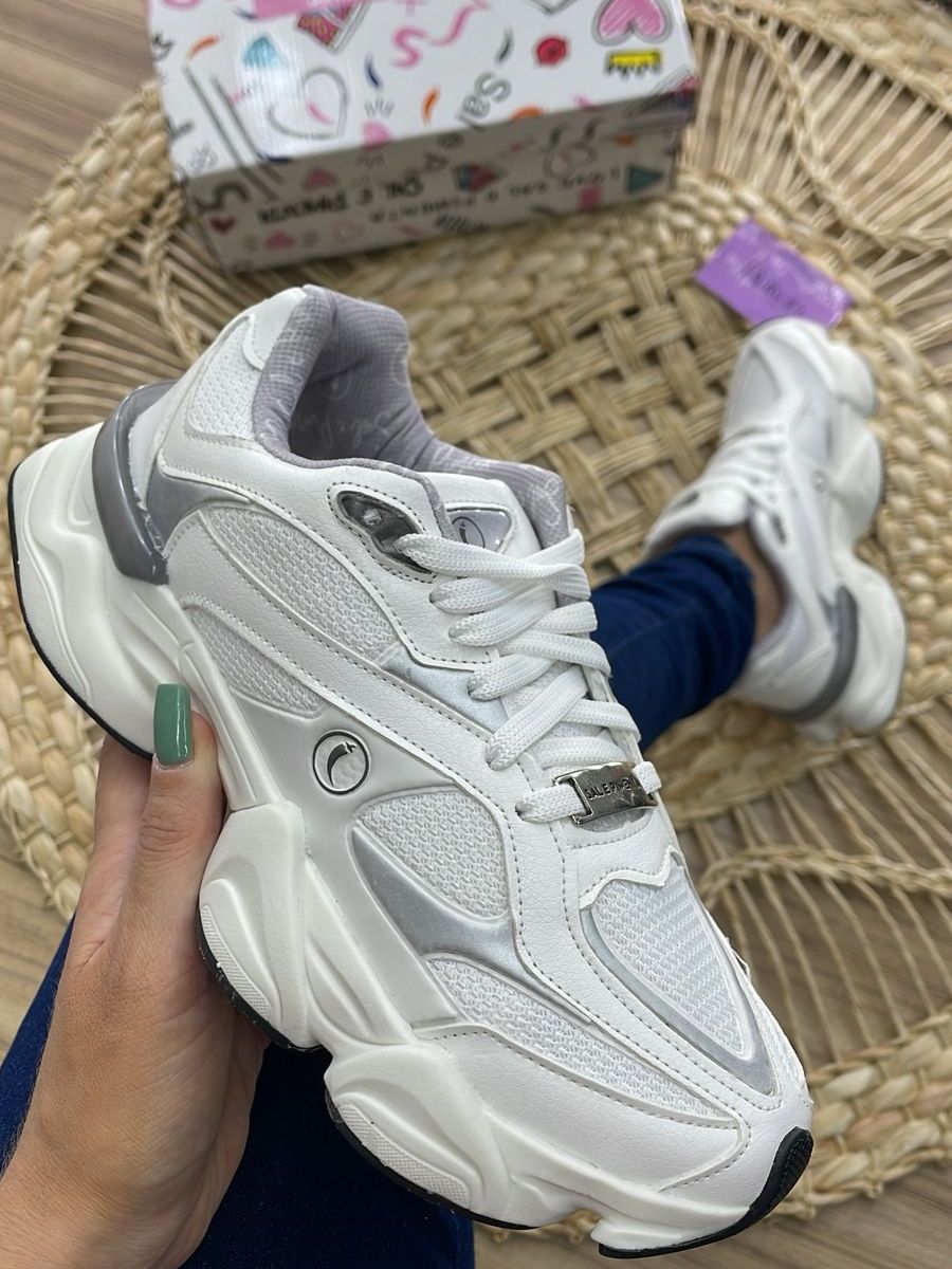 Tênis Feminino Zion Branco Com Cinza Sal e Pimenta Original Tamanhos 34 ao 39. Modelo 2025