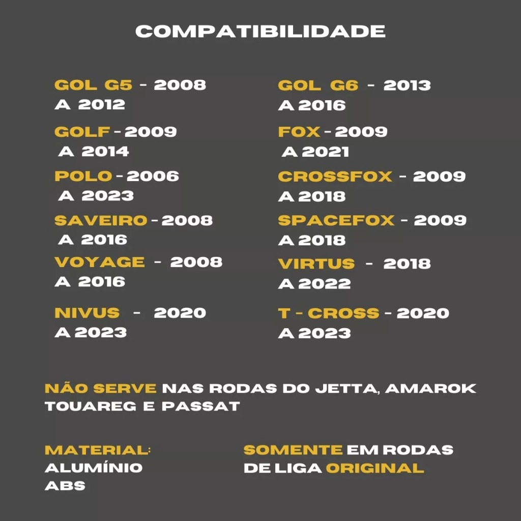 Kit Calotinhas Centro De Roda Miolo New Vw Volkswagen Nivus G5 G6 Gol Golf Polo