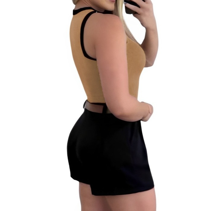 Conjunto Duas Peças Feminino Cropped e Short Alfaiataria Com Cinto Fivela