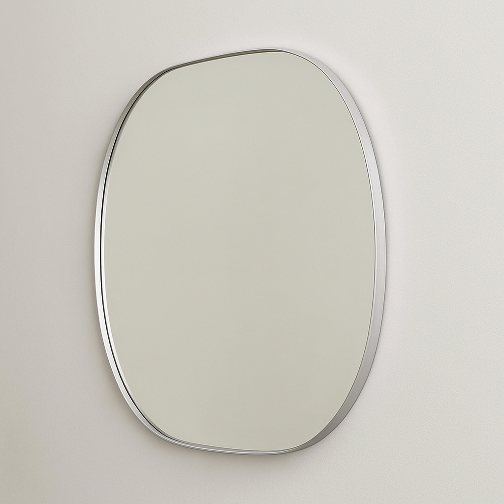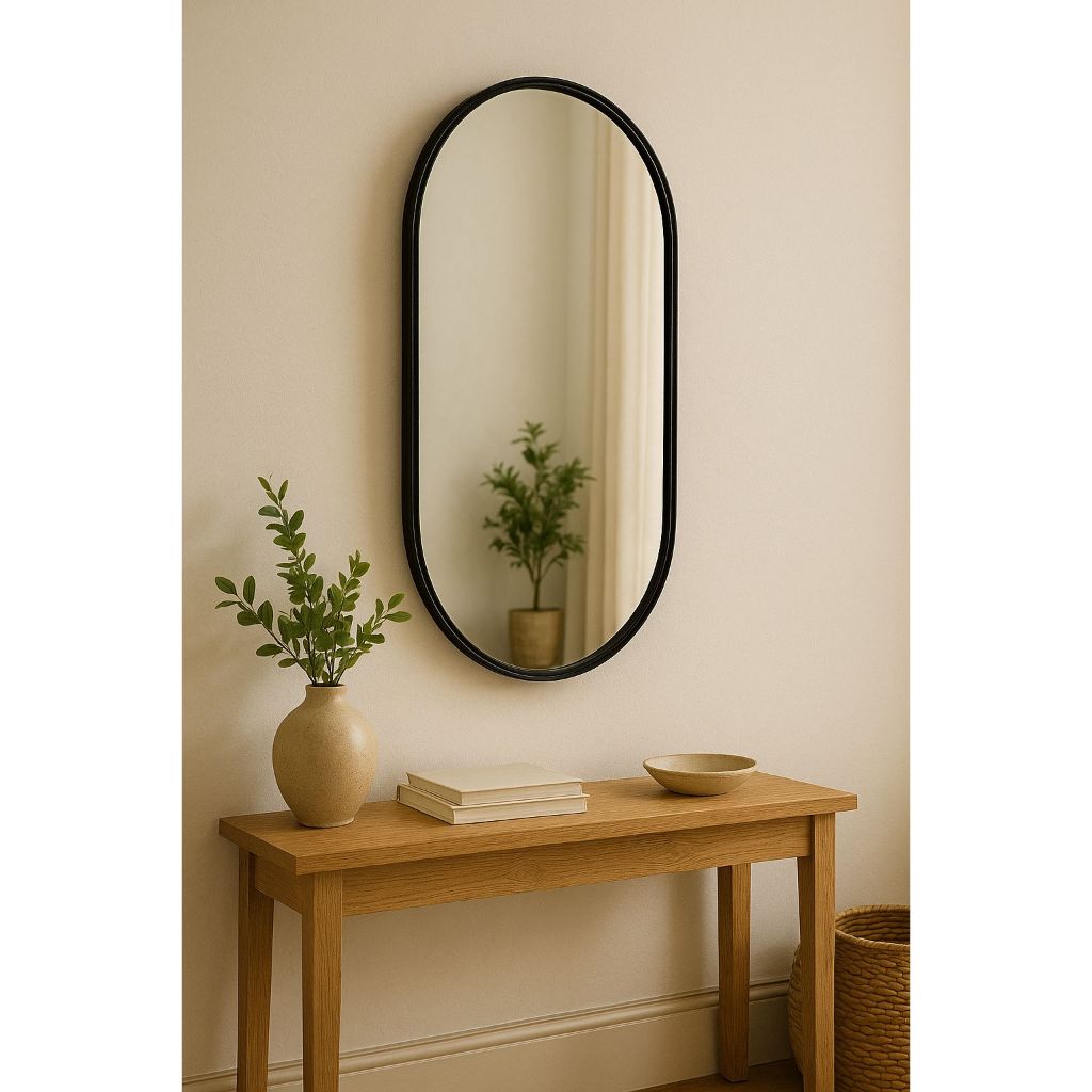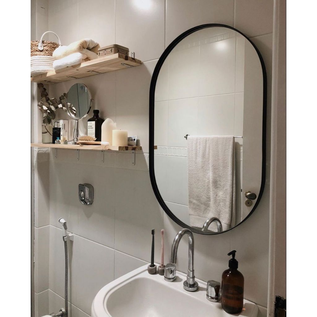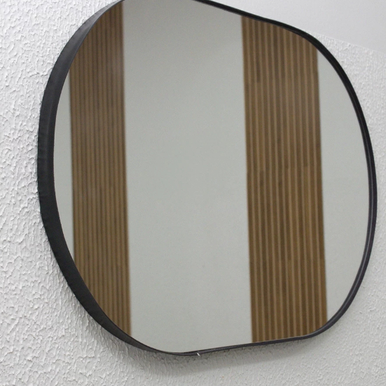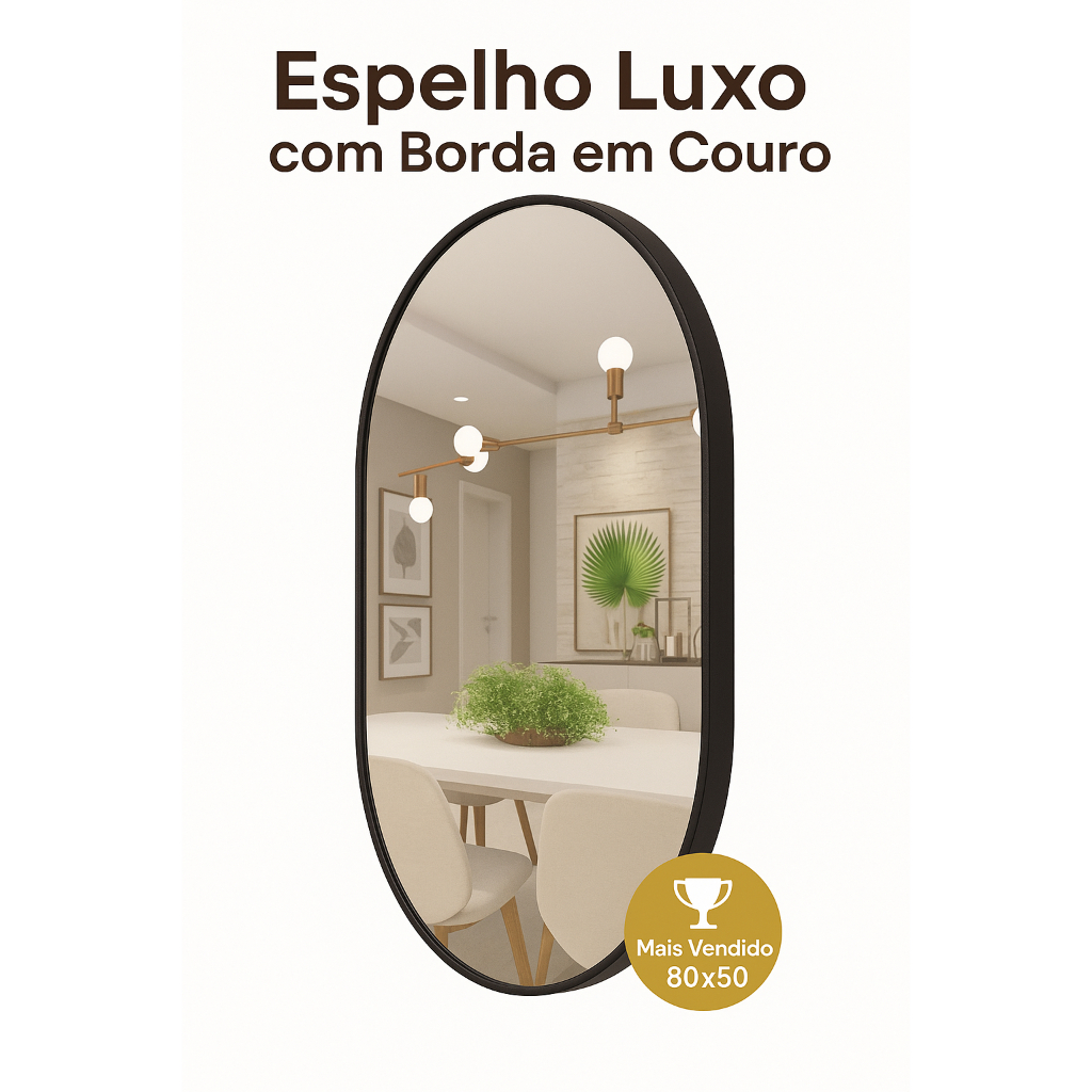 Espelho Decorativo Oval 80x50, 76x43 e 50x40 Com Borda Em Couro + Suporte