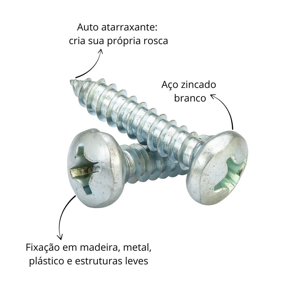 Parafuso Auto Atarraxante Panela Philips Zincado 100 Peças WM 4,2x13