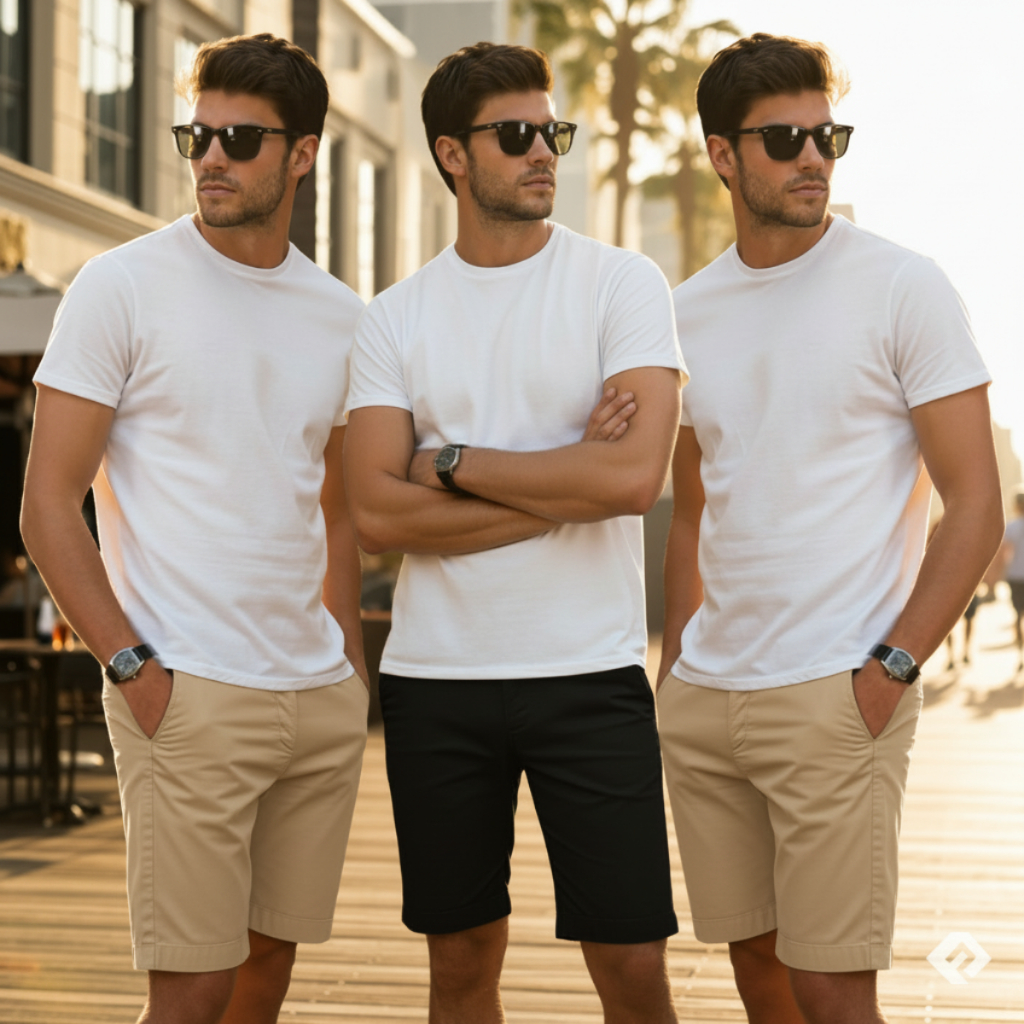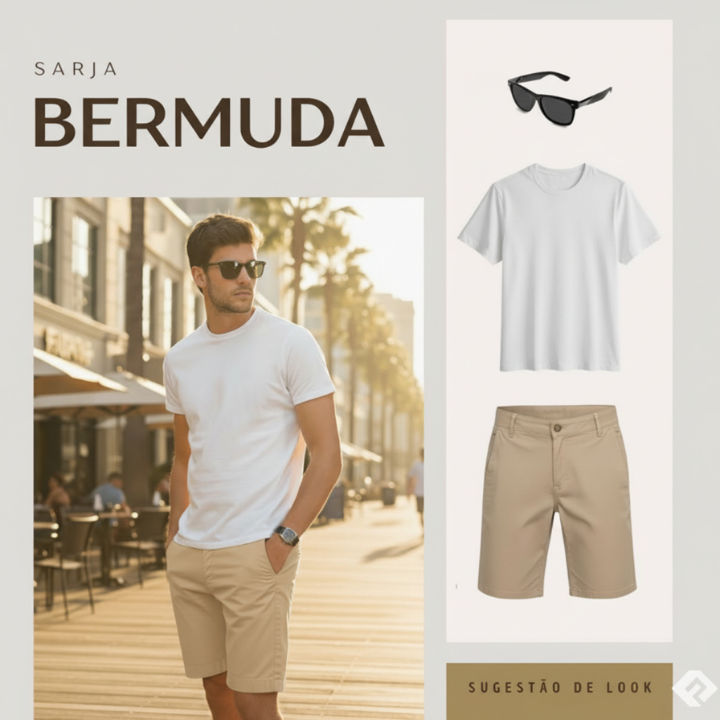 Kit 3 Bermuda Sarja Masculina Slim Alinhada | Tecido Leve e Durável | Ideal para Passeio