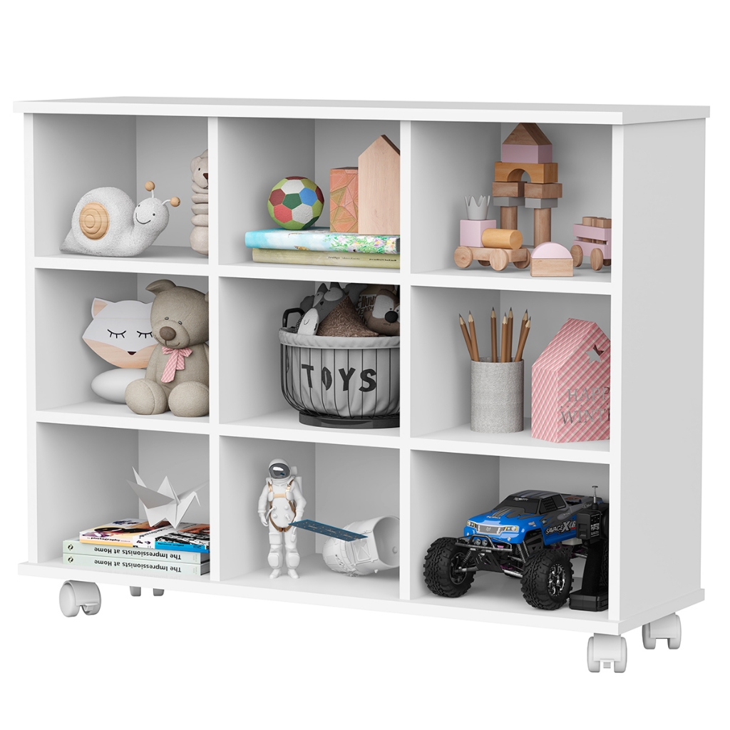 Sapateira Organizador com Rodinhas 9 Nichos Branco para Closet Quarto Feminino Masculino Calçados