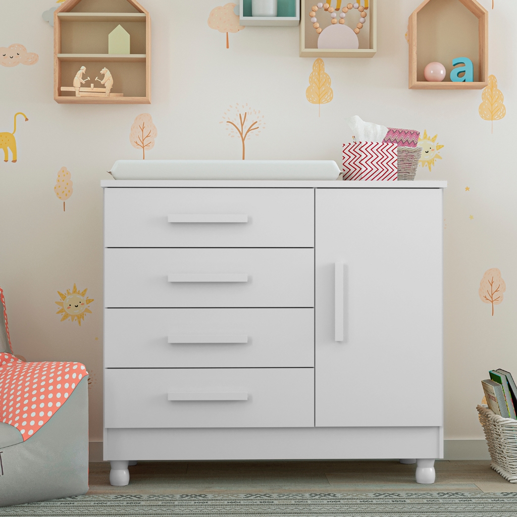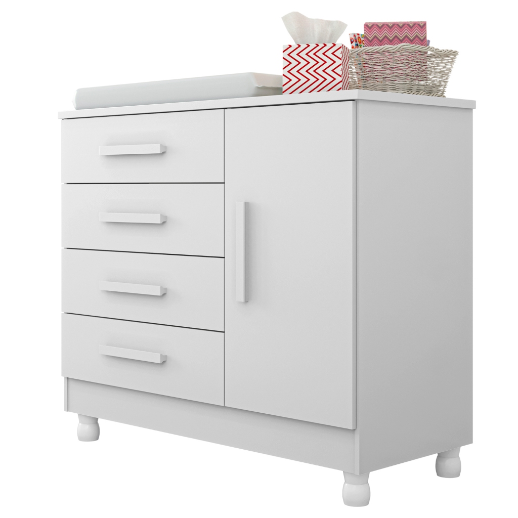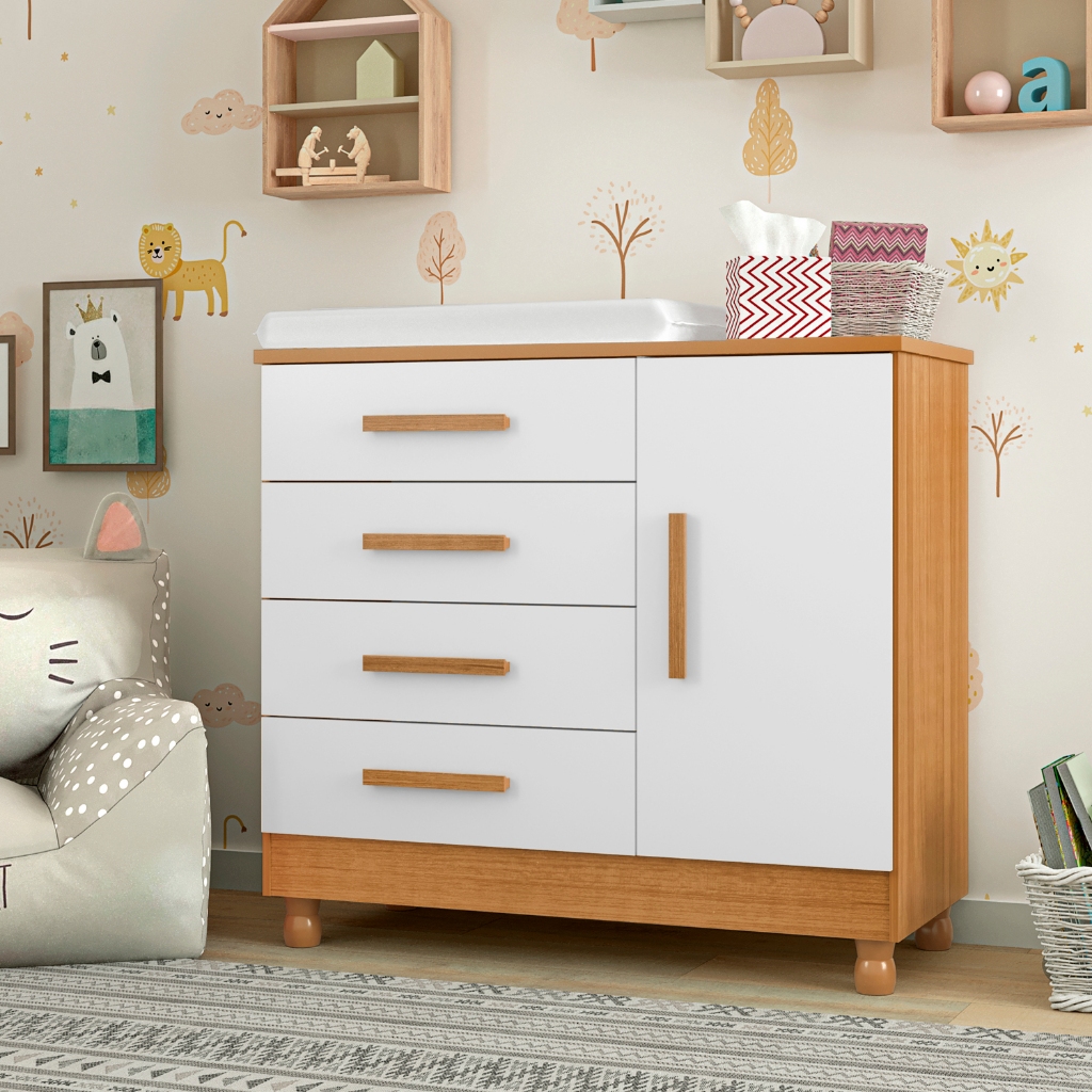 Cômoda com Trocador Infantil Bebê e Sapateira 4 Gavetas Telescópicas Pés Reguláveis Quarto