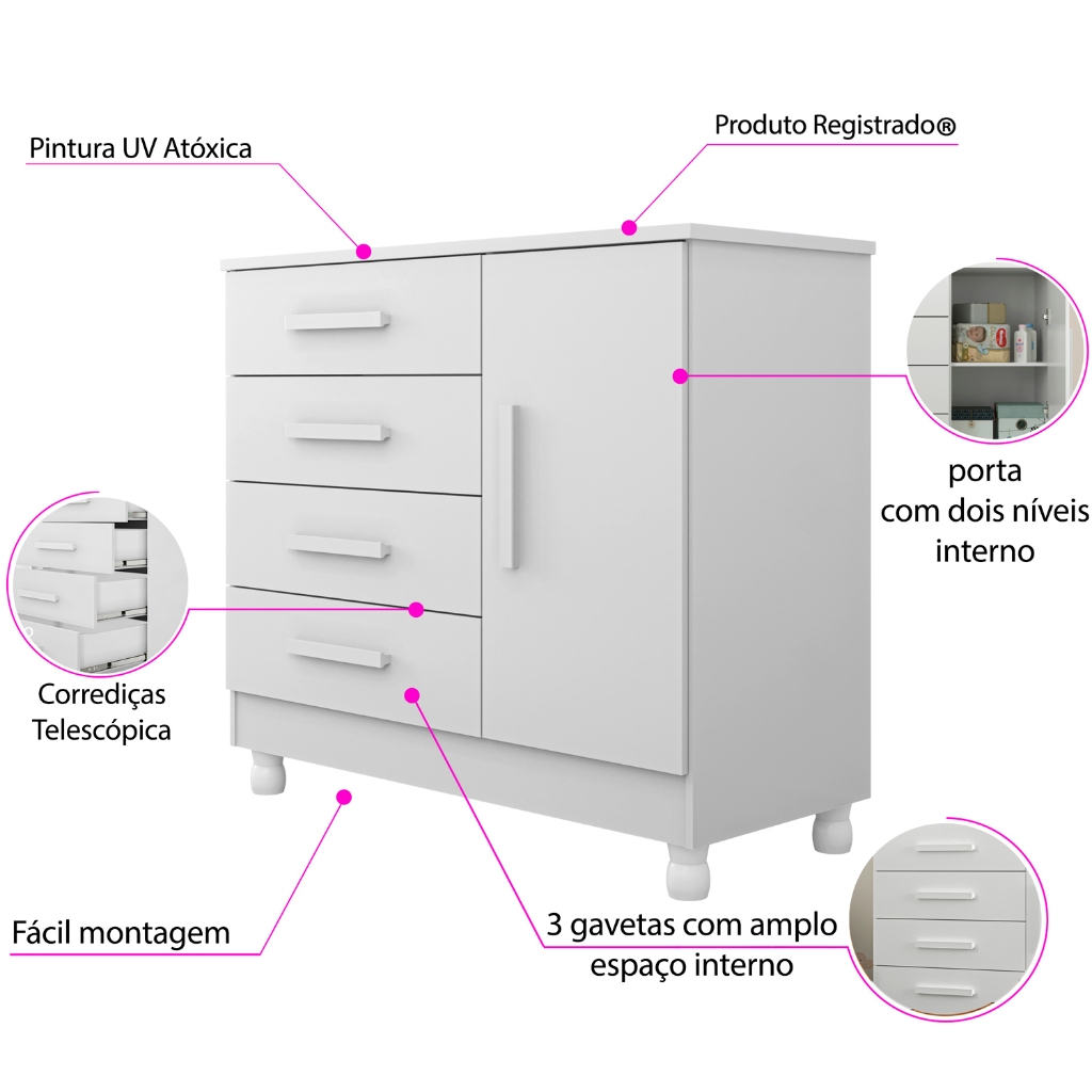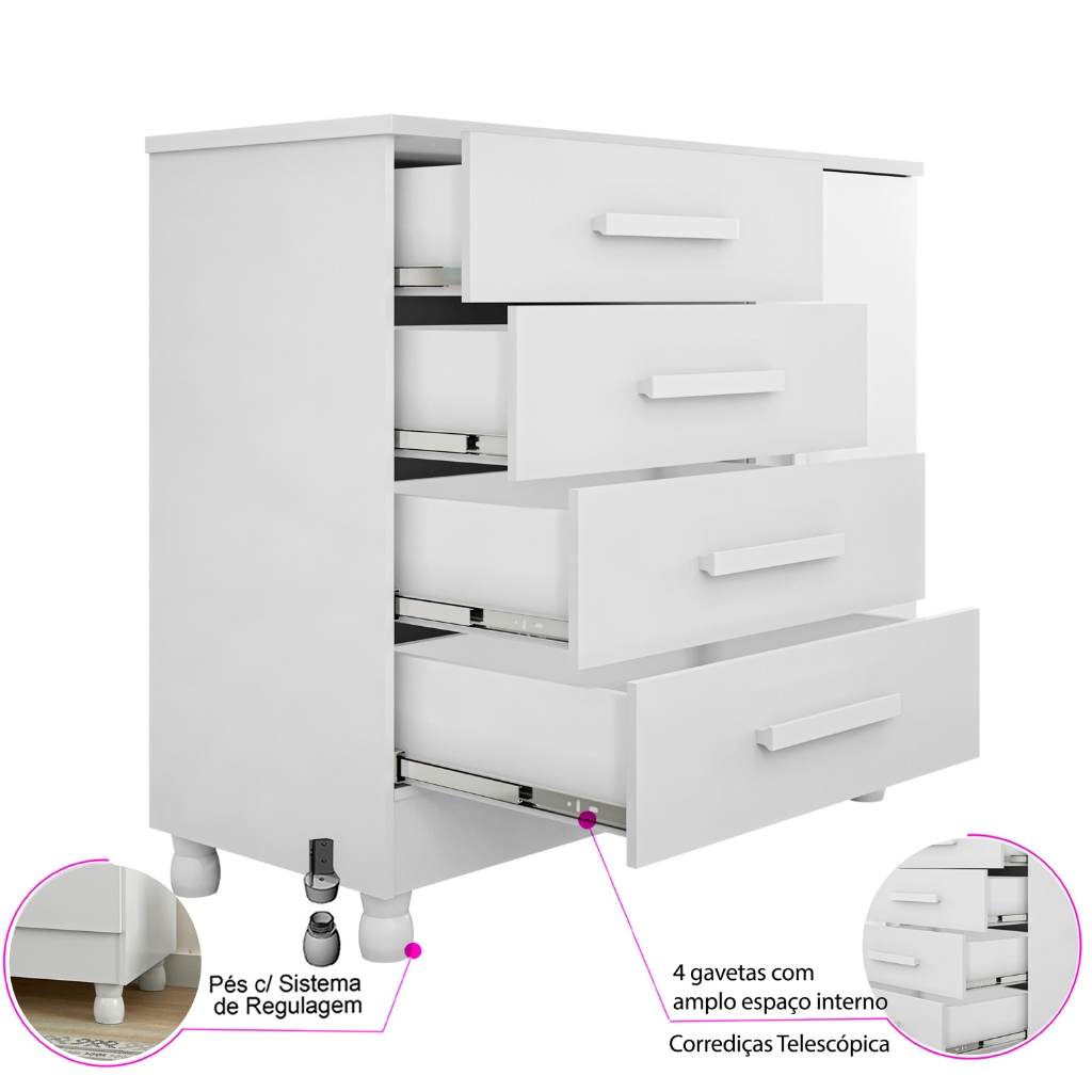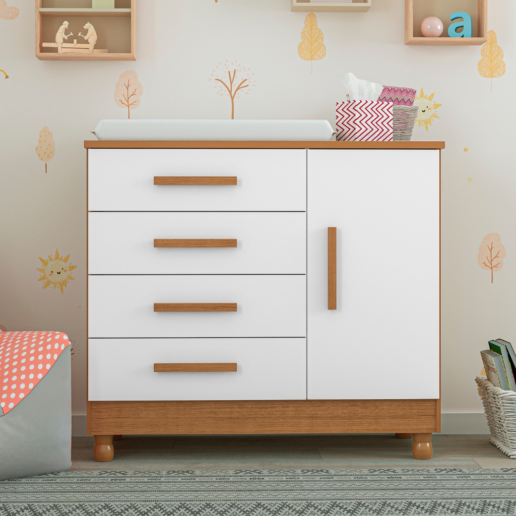 Cômoda com Trocador Infantil Bebê e Sapateira 4 Gavetas Telescópicas Pés Reguláveis Quarto