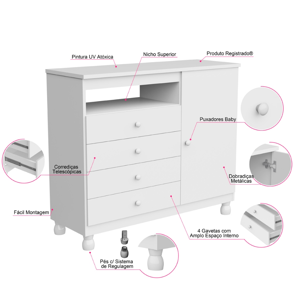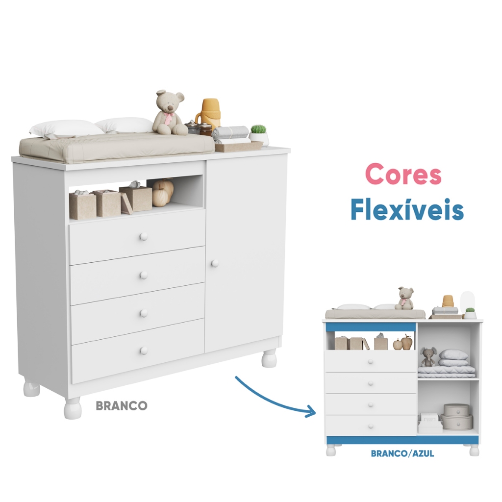 Cômoda Organizadora De Roupas Bebe Baby Multiuso Gavetas Gaveteiro Quarto Organizador Regulagem Pés