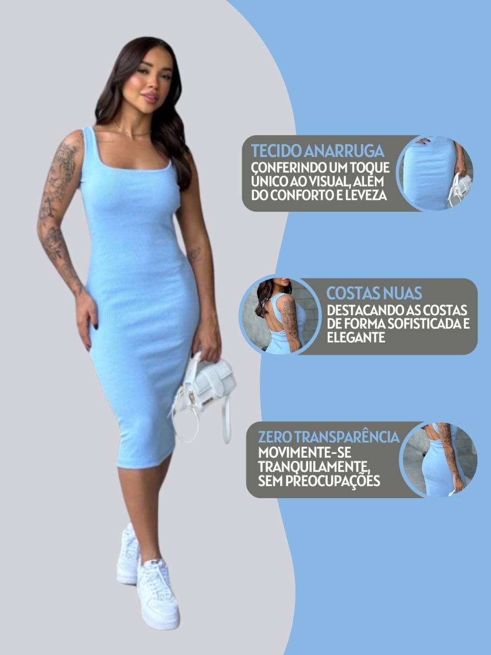 Vestido Canelado Midi Costas Nua Tubinho Anarruga Feminino Dia a Dia Casual