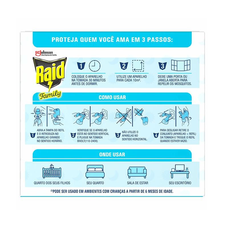Repelente Elétrico Líquido Raid Family Aparelho + Refil 32,9ml
