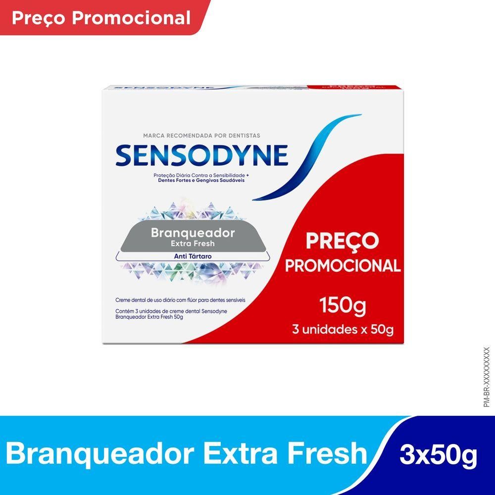 Kit Creme Dental Sensodyne Branqueador Extra Fresh 3 Unidades 50g Cada