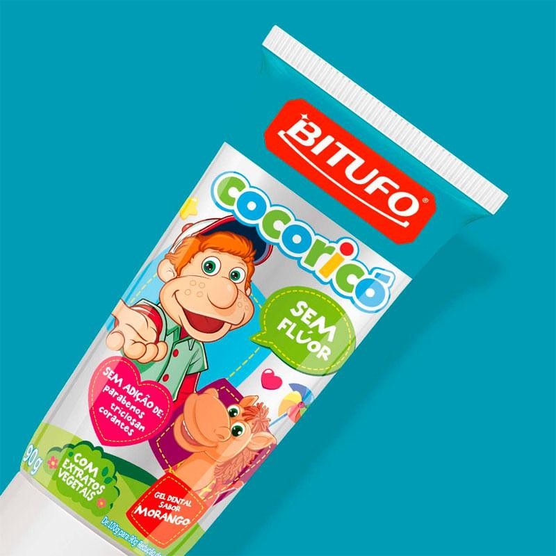 Gel Dental Bitufo Cocoricó Sem Flúor Sabor Morango 90g