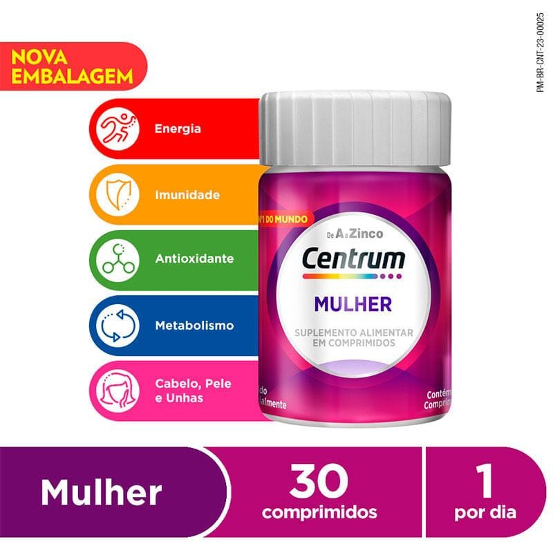 Suplemento Alimentar Centrum Mulher De A a Zinco 30 Comprimidos