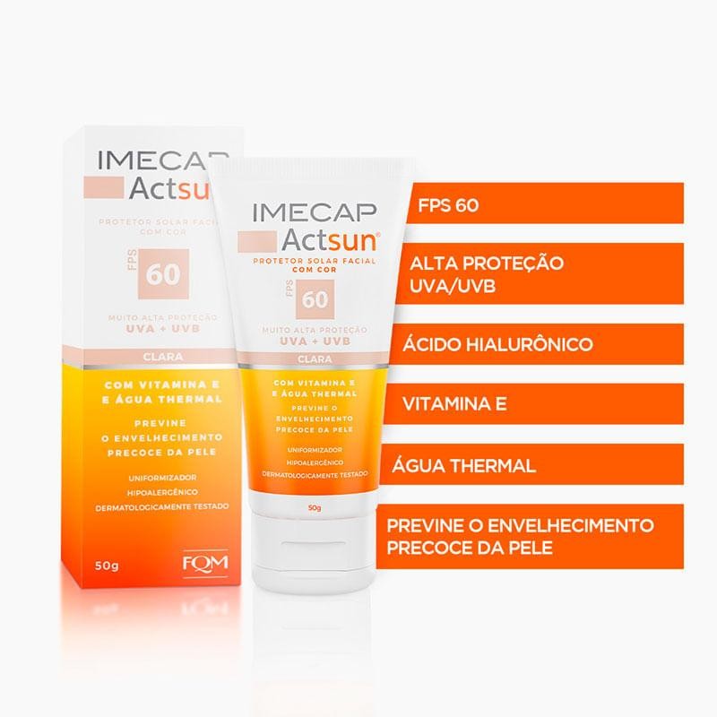 Protetor Solar Facial Imecap Actsun FPS60 Cor Clara 50g