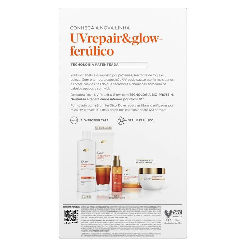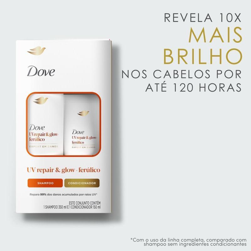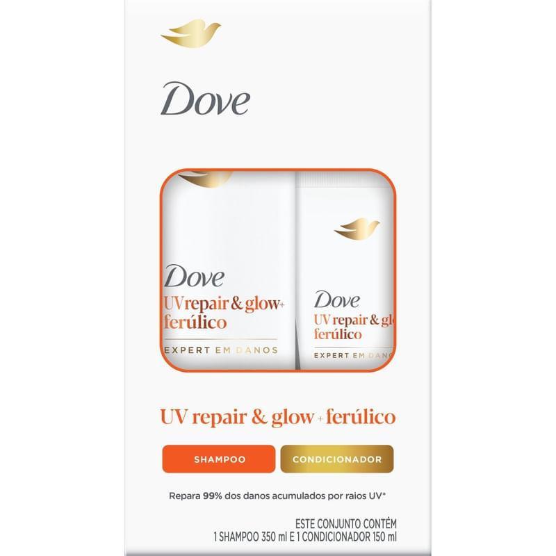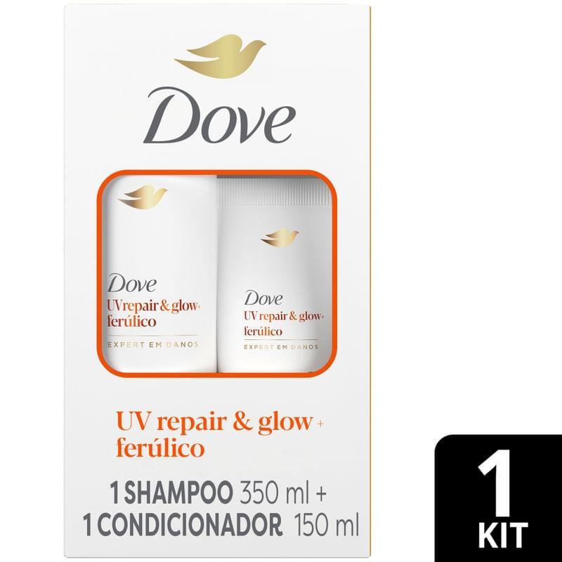 Kit Shampoo 350ml + Condicionador Dove UVrepair & Glow+ Ferúlico Expert em Danos 150ml