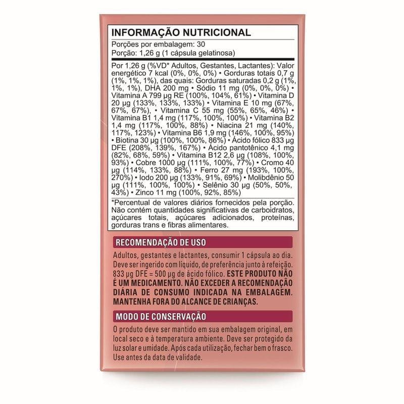 Suplemento Alimentar Materna Multivitamínico com DHA 30 Cápsulas Gelatinosas