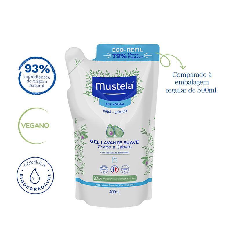 Refil Gel Lavante Suave Mustela Corpo e Cabelo 400ml