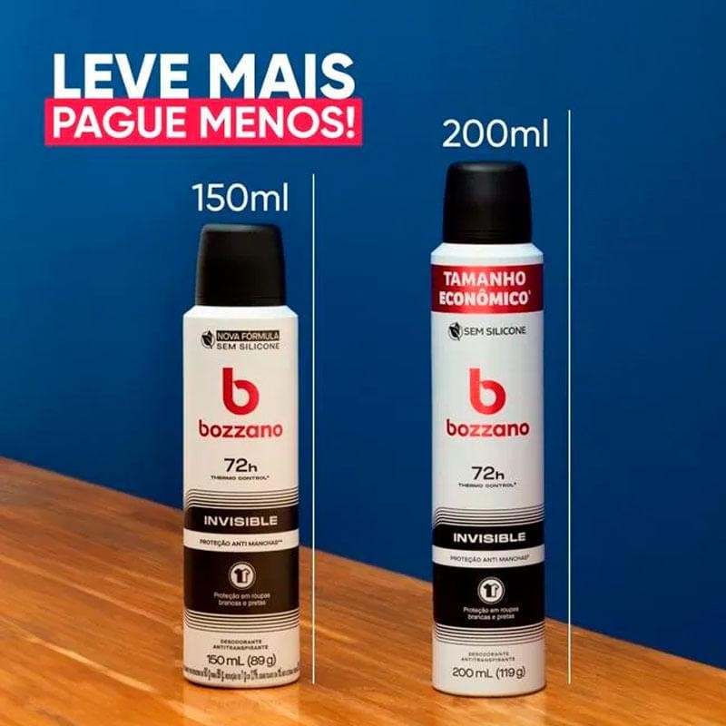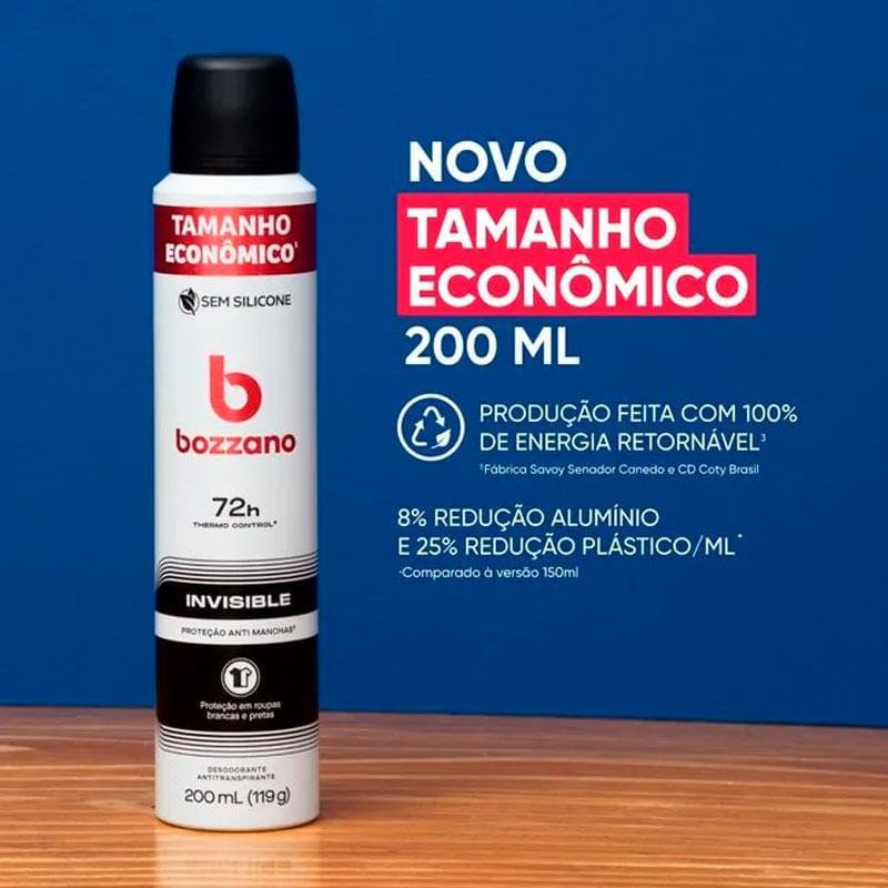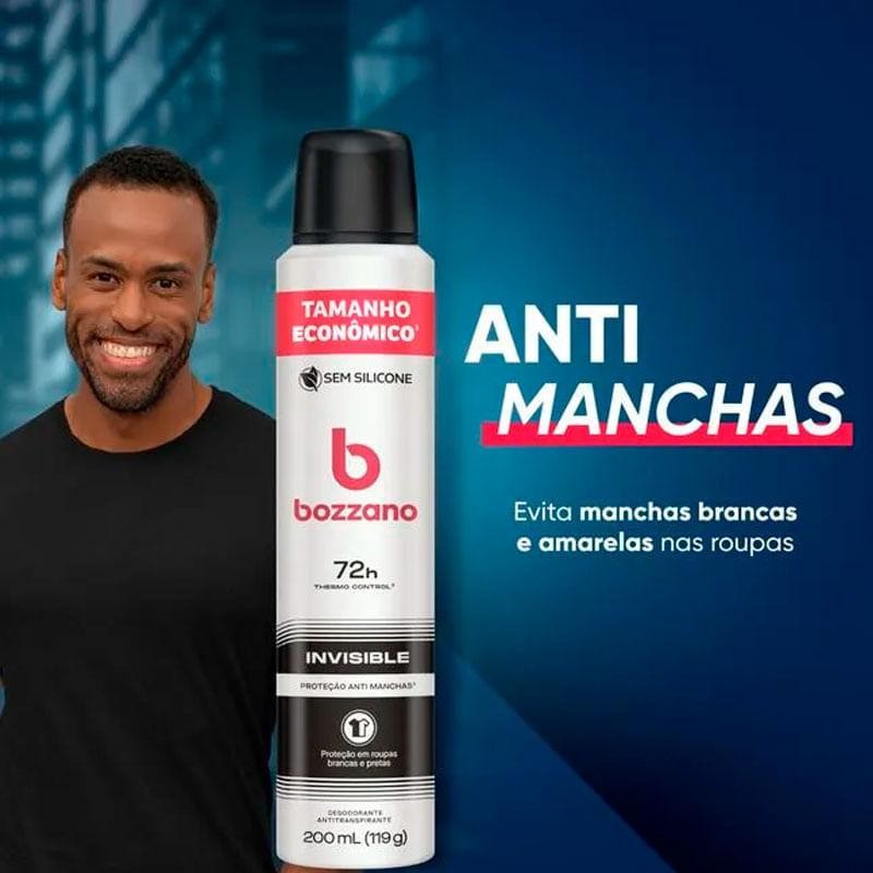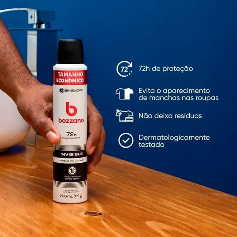 Desodorante Antitranspirante Aerosol Bozzano Invisible 72h Masculino 200ml