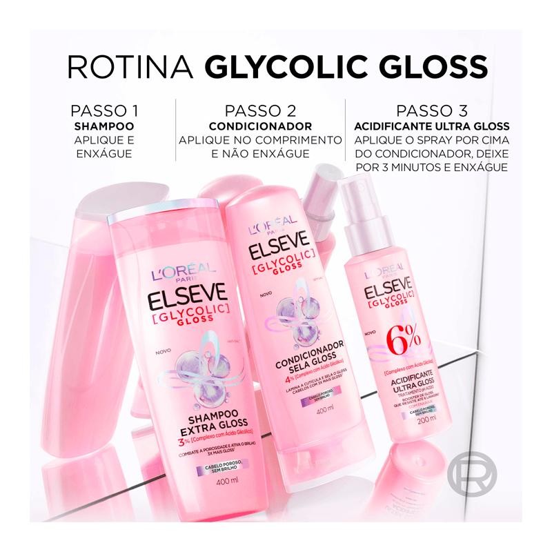 Kit Elseve Glycolic Gloss Shampoo 375ml + Condicionador Glycolic Gloss 170ml