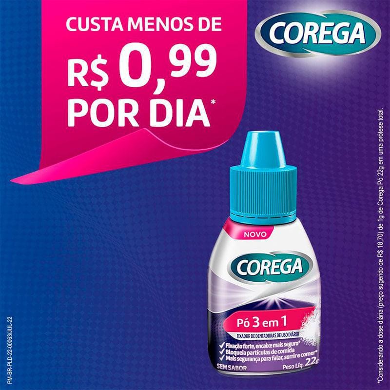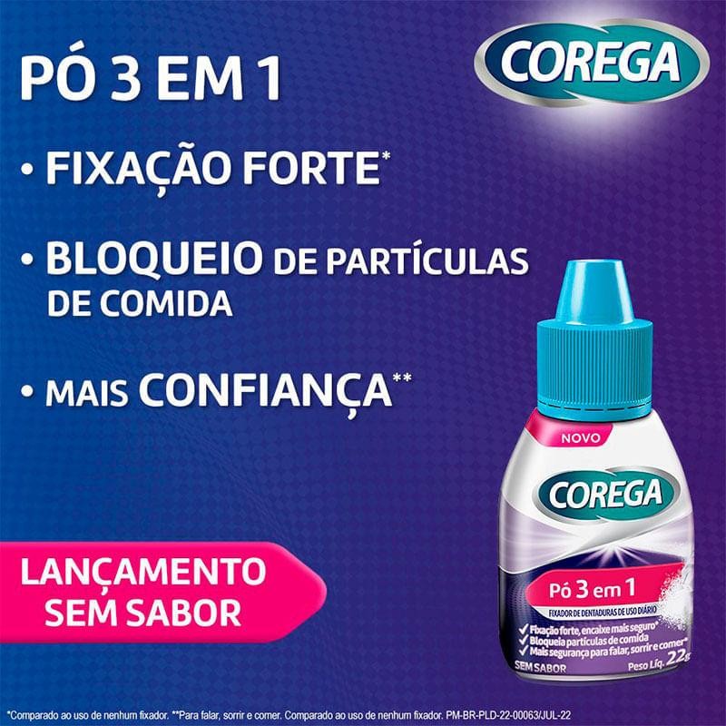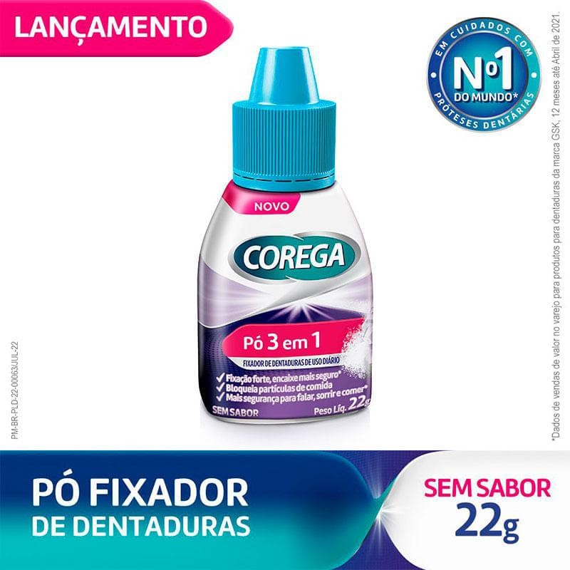 Pó Fixador de Dentadura Corega 3 em 1 Sem Sabor 22g