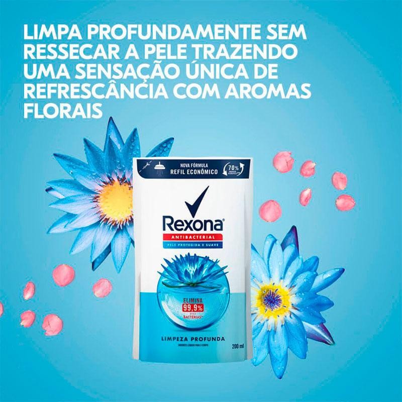 Refil Sabonete Líquido Rexona Antibacterial Limpeza Profunda 200ml
