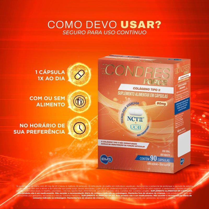 Suplemento Alimentar Condres Force 80mg Colágeno UC II + NCT II 90 Cápsulas