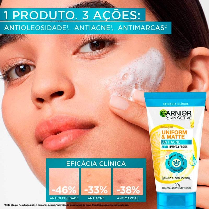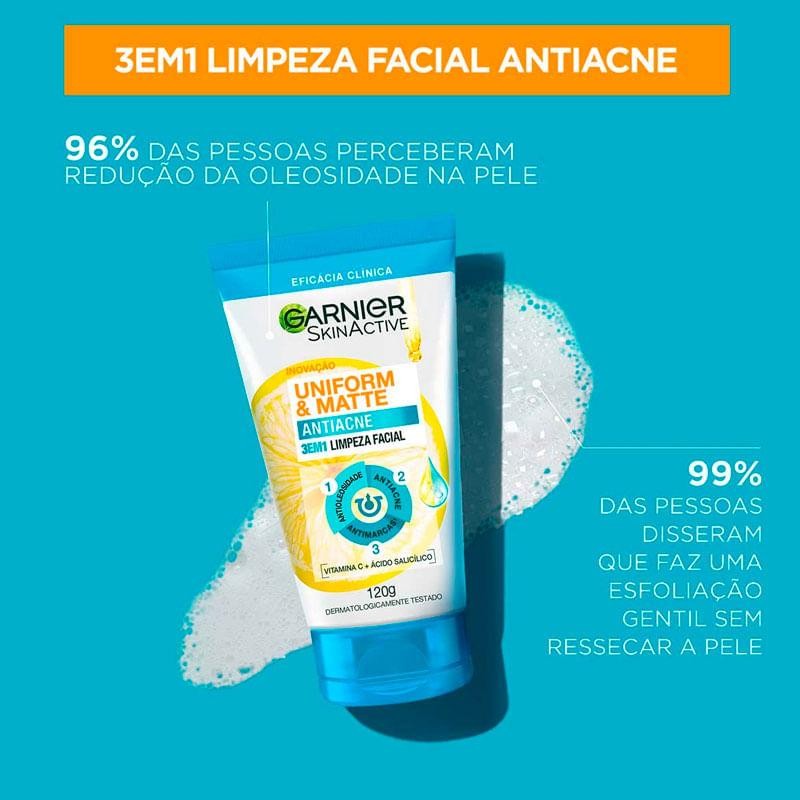 Limpeza Facial 3EM1 Garnier SkinActive Uniform & Matte Antiacne 120g