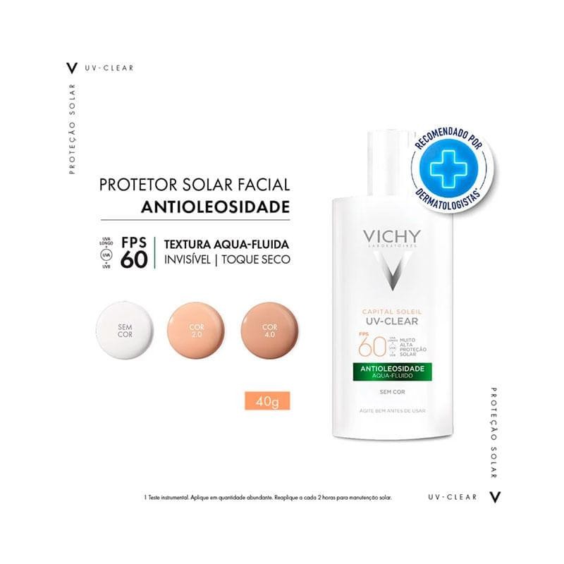 Protetor Vichy Capital Soleil UV-Clear Antioleosidade FPS60 Sem Cor 40g