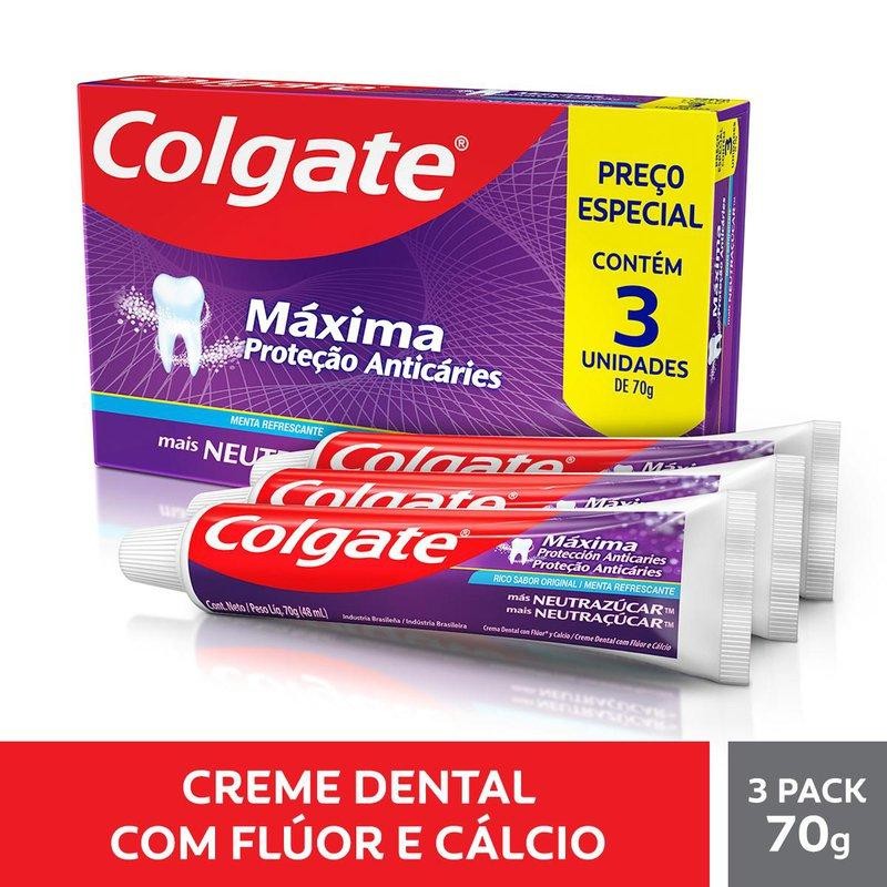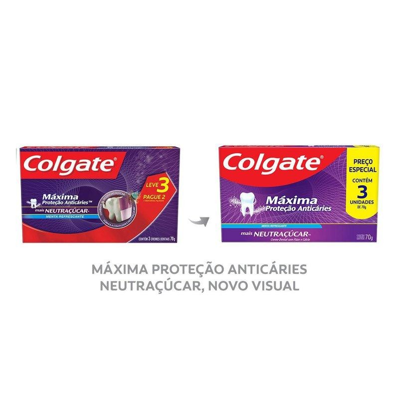 Creme Dental Colgate Máxima Proteção Anticáries mais Neutraçúcar 3 Unidades 70g Cada