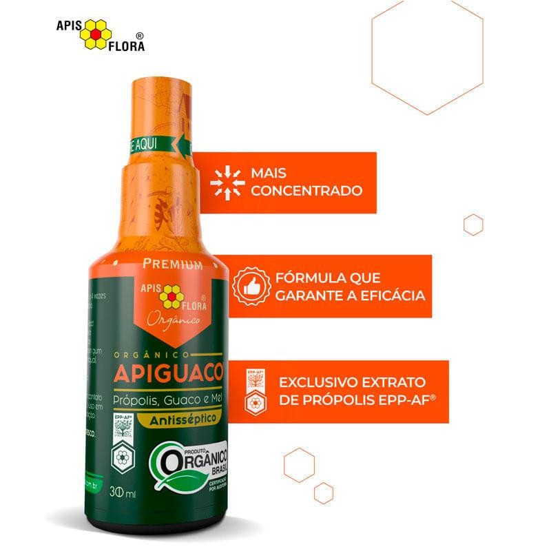 Apiguaco Orgânico Spray Antisséptico Sabor Própolis, Guaco e Mel 30ml