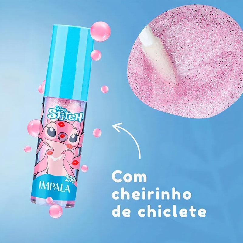 Kit Esmalte Infantil Impala Azul Stitch 6ml + Brilho Labial Infantil Stitch 2,3g