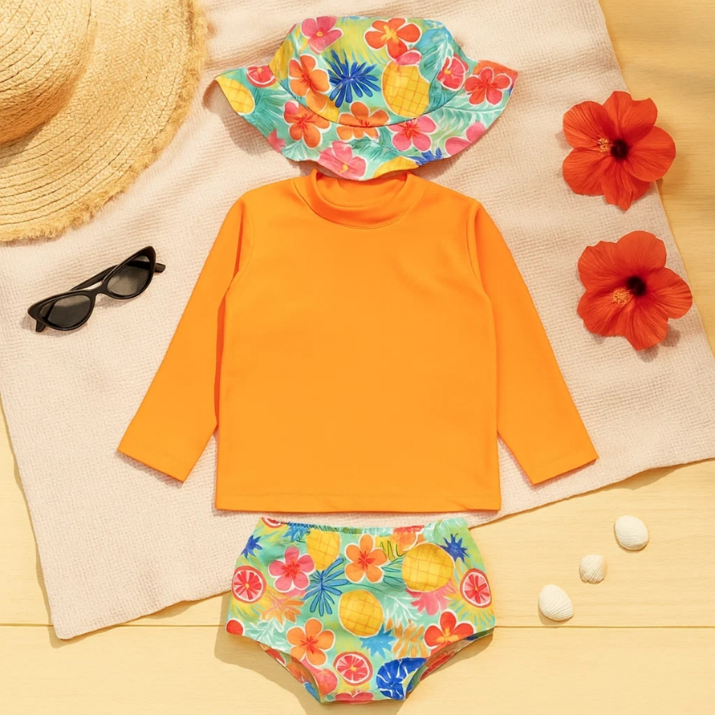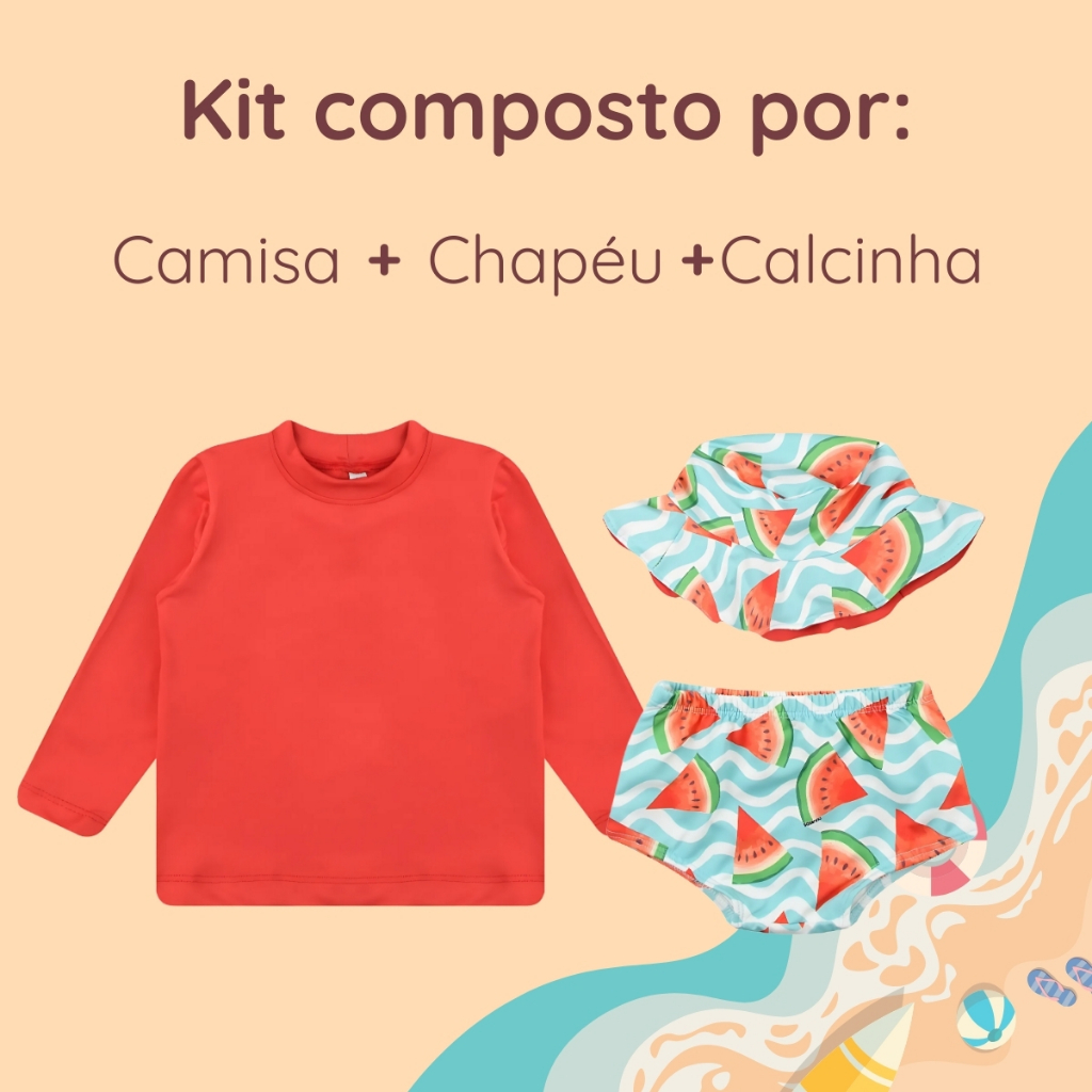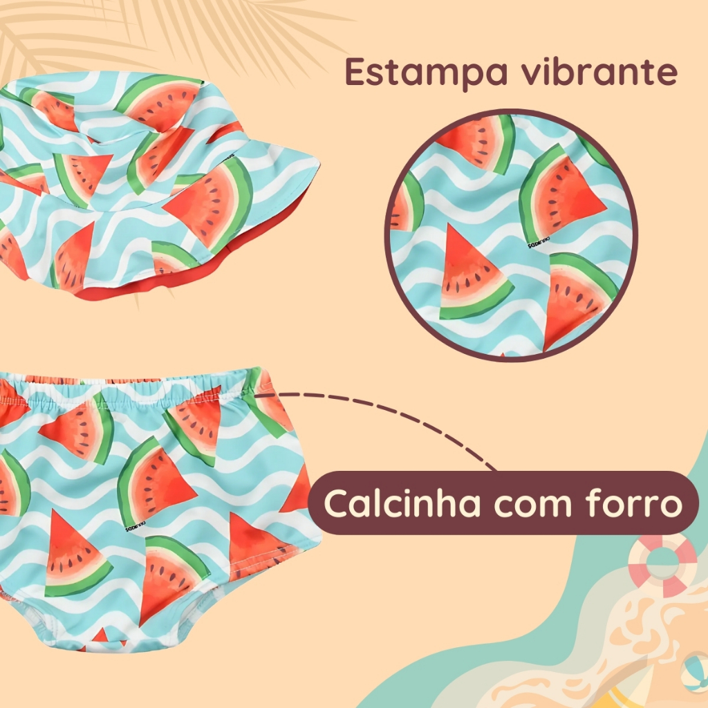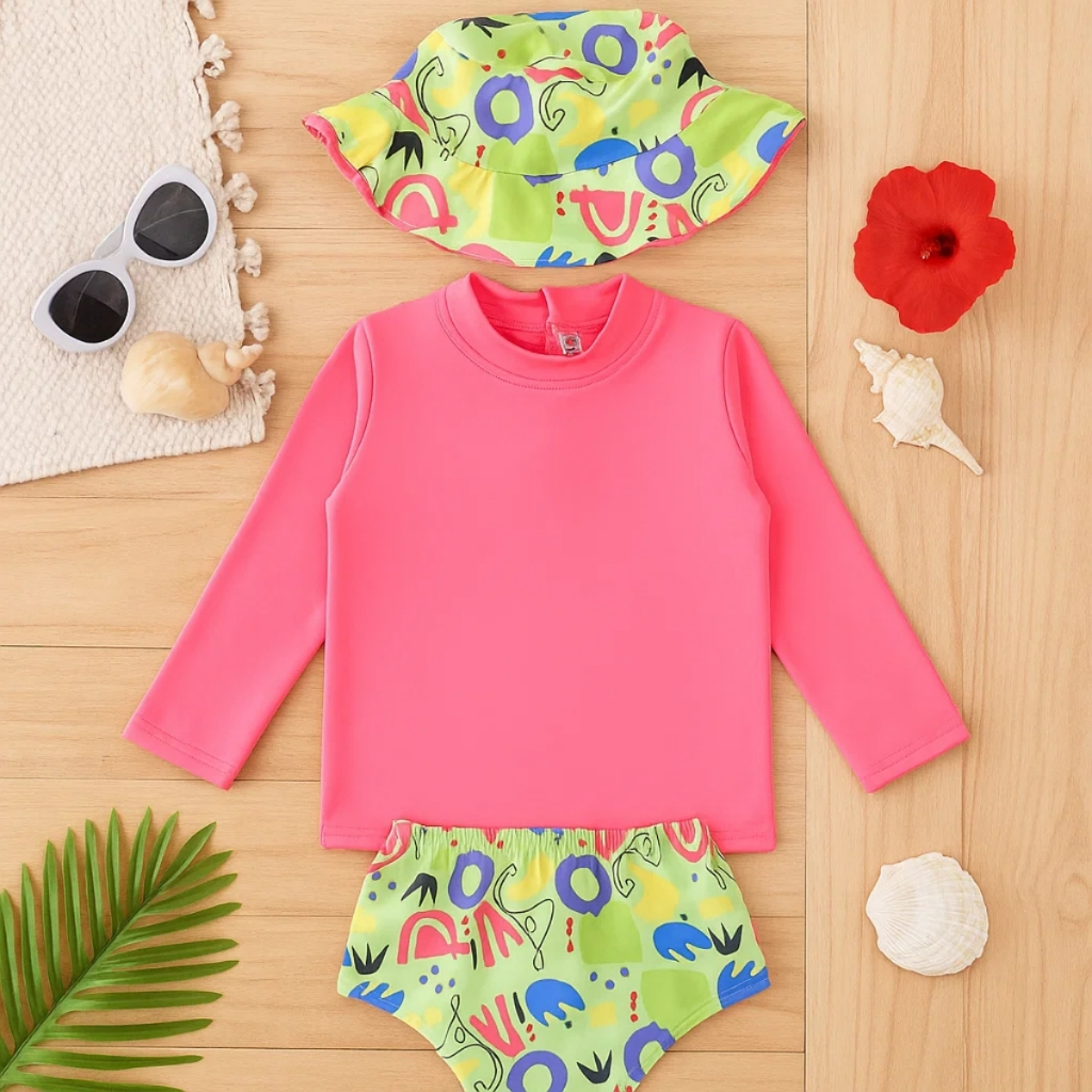 Conjunto Praia Bebê Proteção Uv 50+ Com Forro Menina 3 Peças