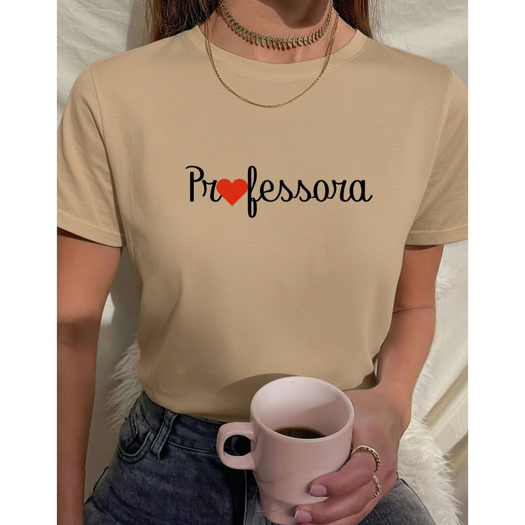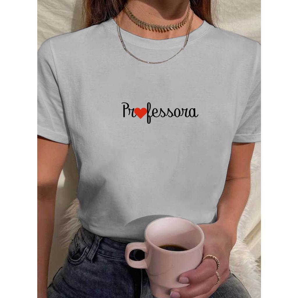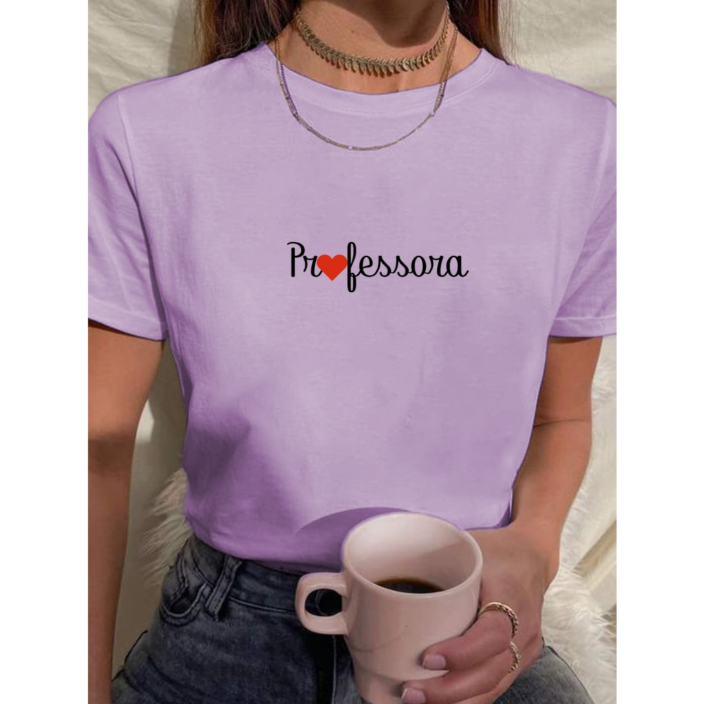 Camiseta Feminina Babylook t shirt professora coração pedagogia 100% Algodão