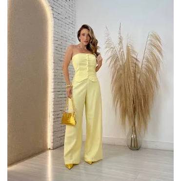 Conjunto Alfaiataria Feminino Blusa TOMARA que CAIA e Calça PANTALONA