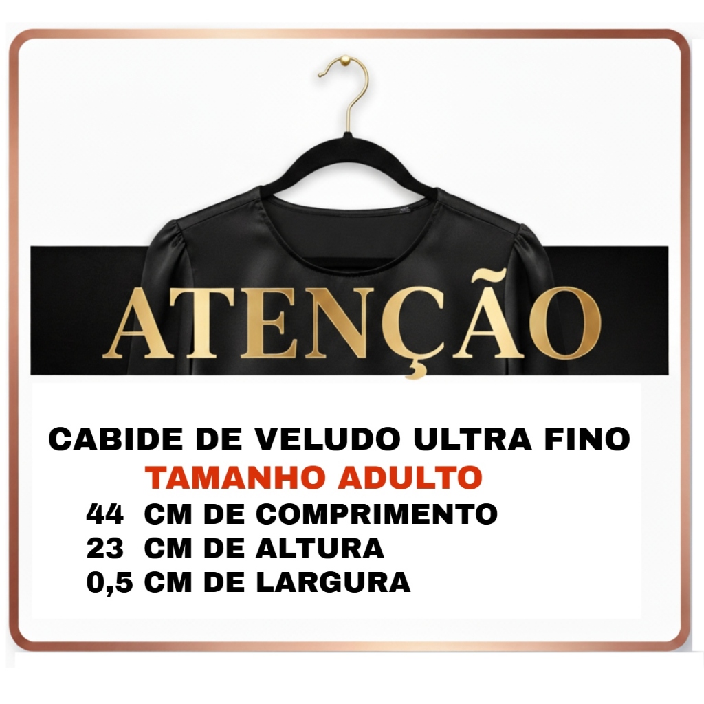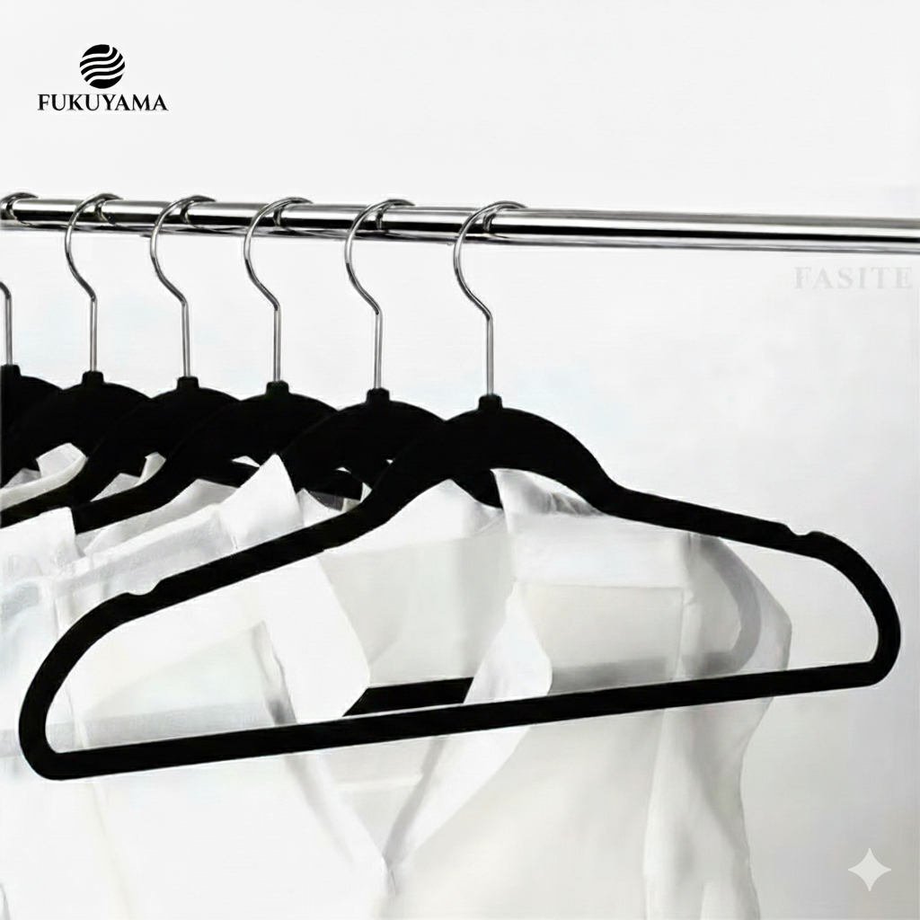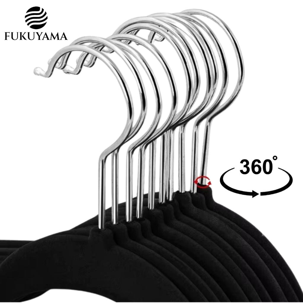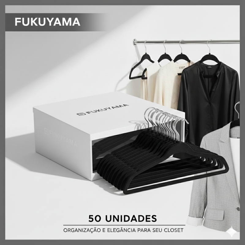 KIT 50 CABIDES DE VELUDO PRETO FUKUYAMA Antideslizante Slim Com Gancho Giratório 360°