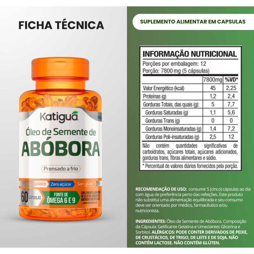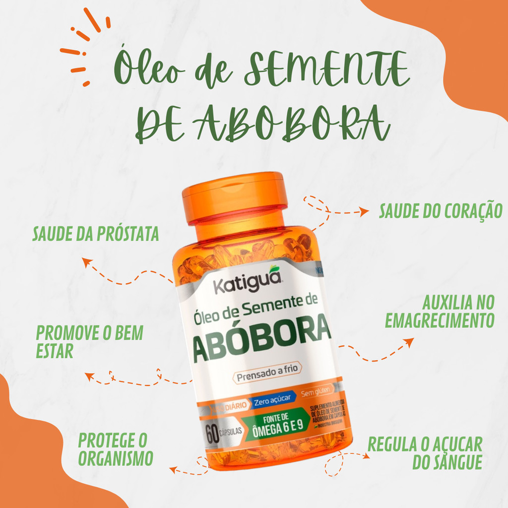 Kit 1, 2 ou 3 Potes Óleo de Semente de Abóbora 1000mg 60 cápsulas Puro Premium Abobora