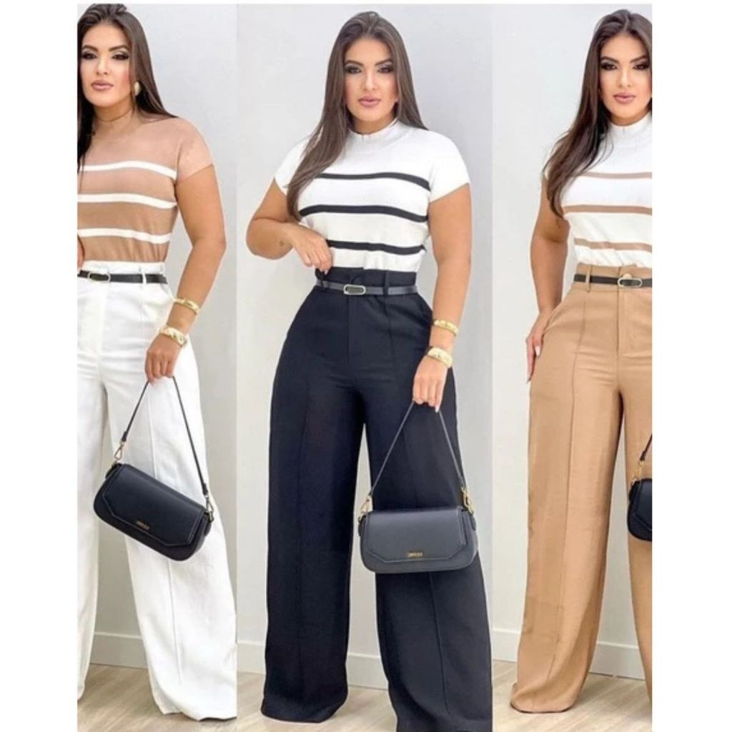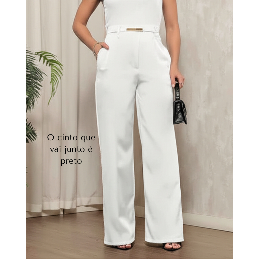 Calça Pantalona Alfaiataria Premium Cintura Alta Com Bolso Com Cinto PROMOÇÃO