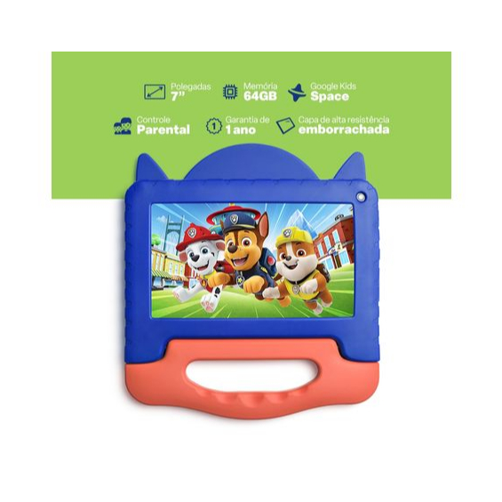 Tablet Infantil Multilaser NB421 Patrulha Canina Chase Tela 7" Wi-Fi 64GB 4GB RAM Azul
