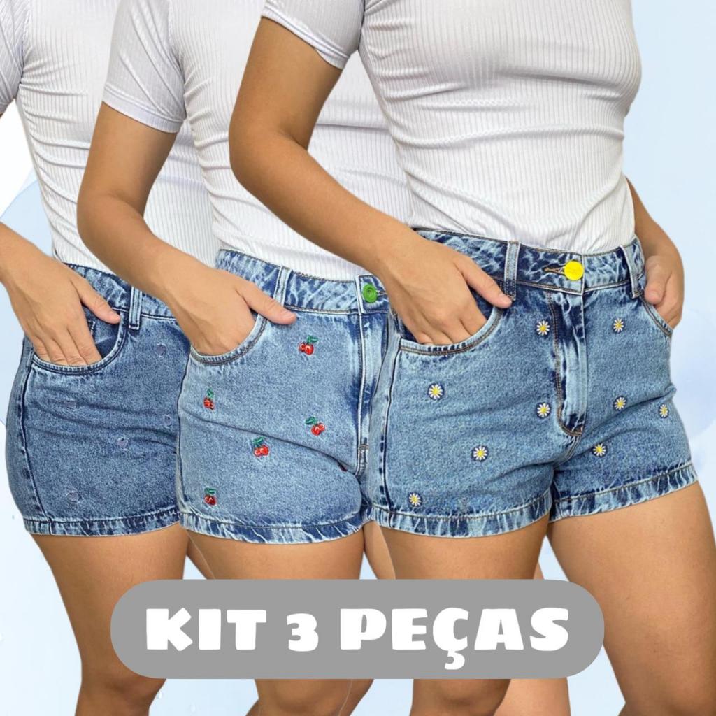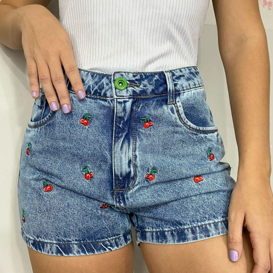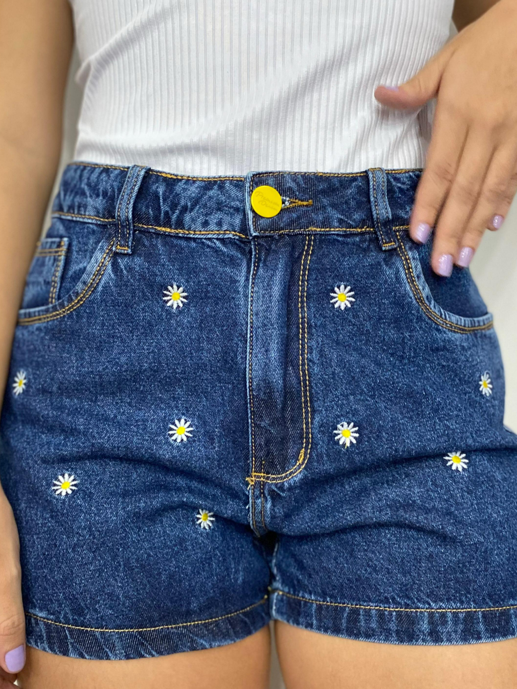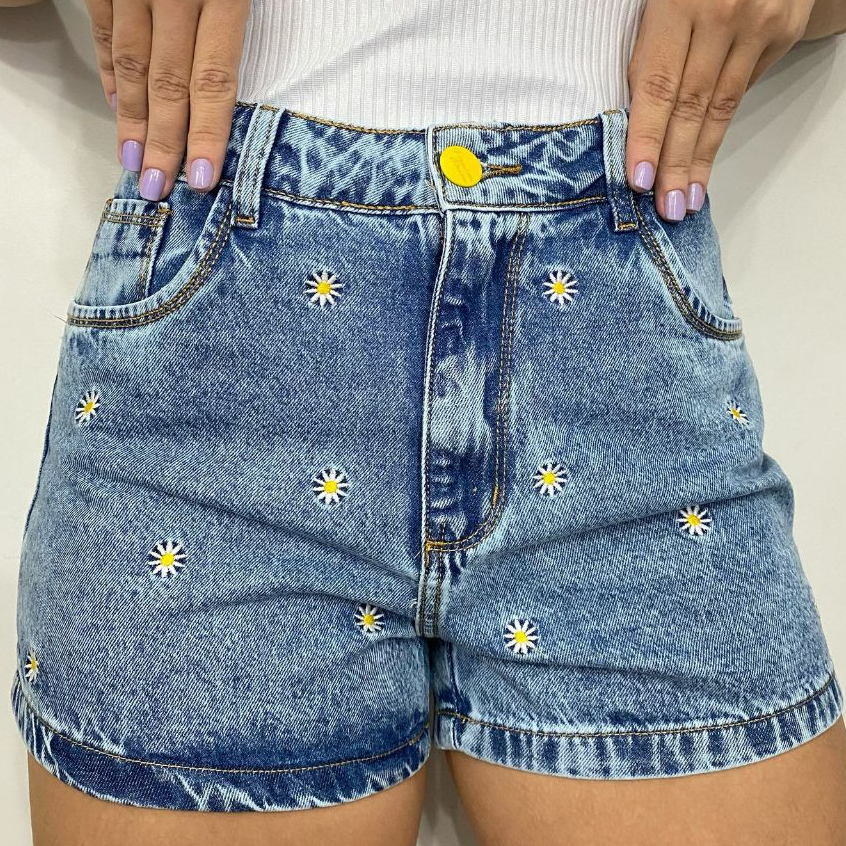 Short Jeans Feminino Bordado Sem Lycra Alto Padrão