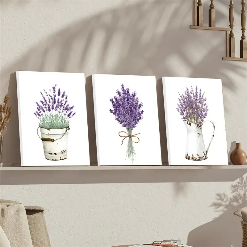 Kit Quadro Decorativo Abstrato Flores Selvagens Lilás Lavanda Sala Cozinha Quarto