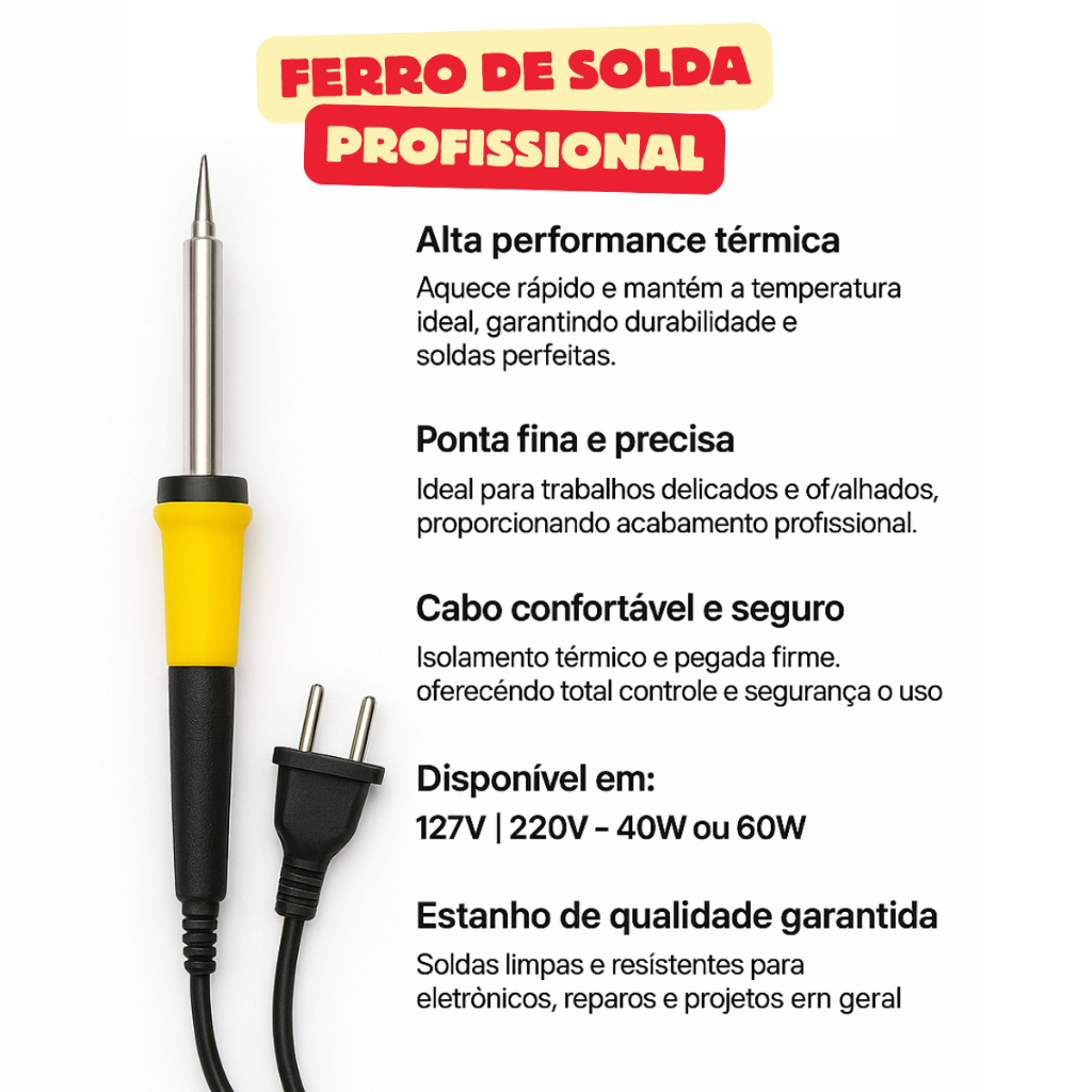 Kit Ferro De Solda Com Estanho 60W Soldador 40W 110v 220v Resistente